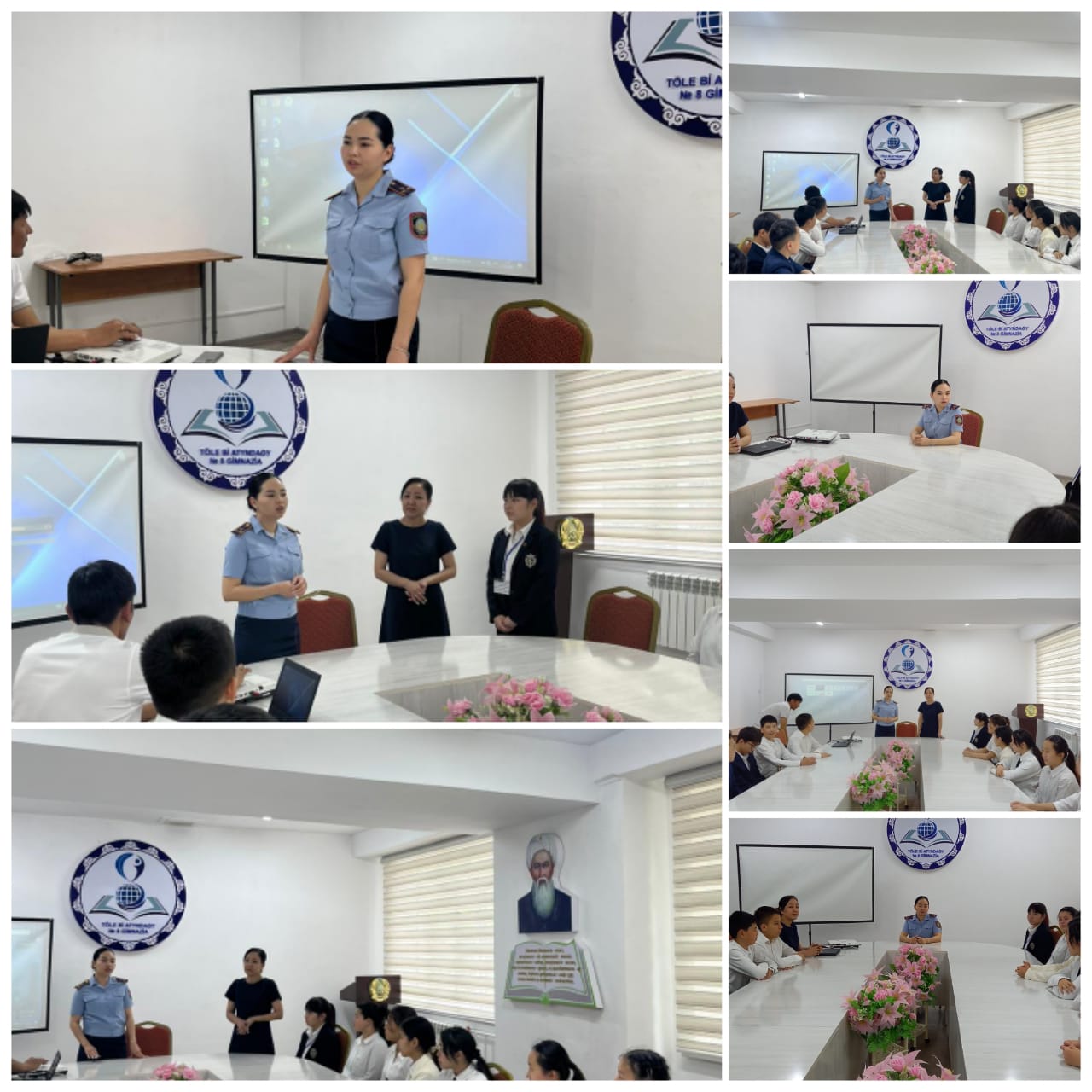 15 май 2023 0 1 2 3 4 5 Түлектердің жұлдызды күні "Түлектердің жұлдызды куні " жобасы аясында 7 "Г" сынып білім алушылары мен гимназия түлегі полиция аға лейтенанты Шамарданова Самал Нұрланқызымен кездесу өткізілді.