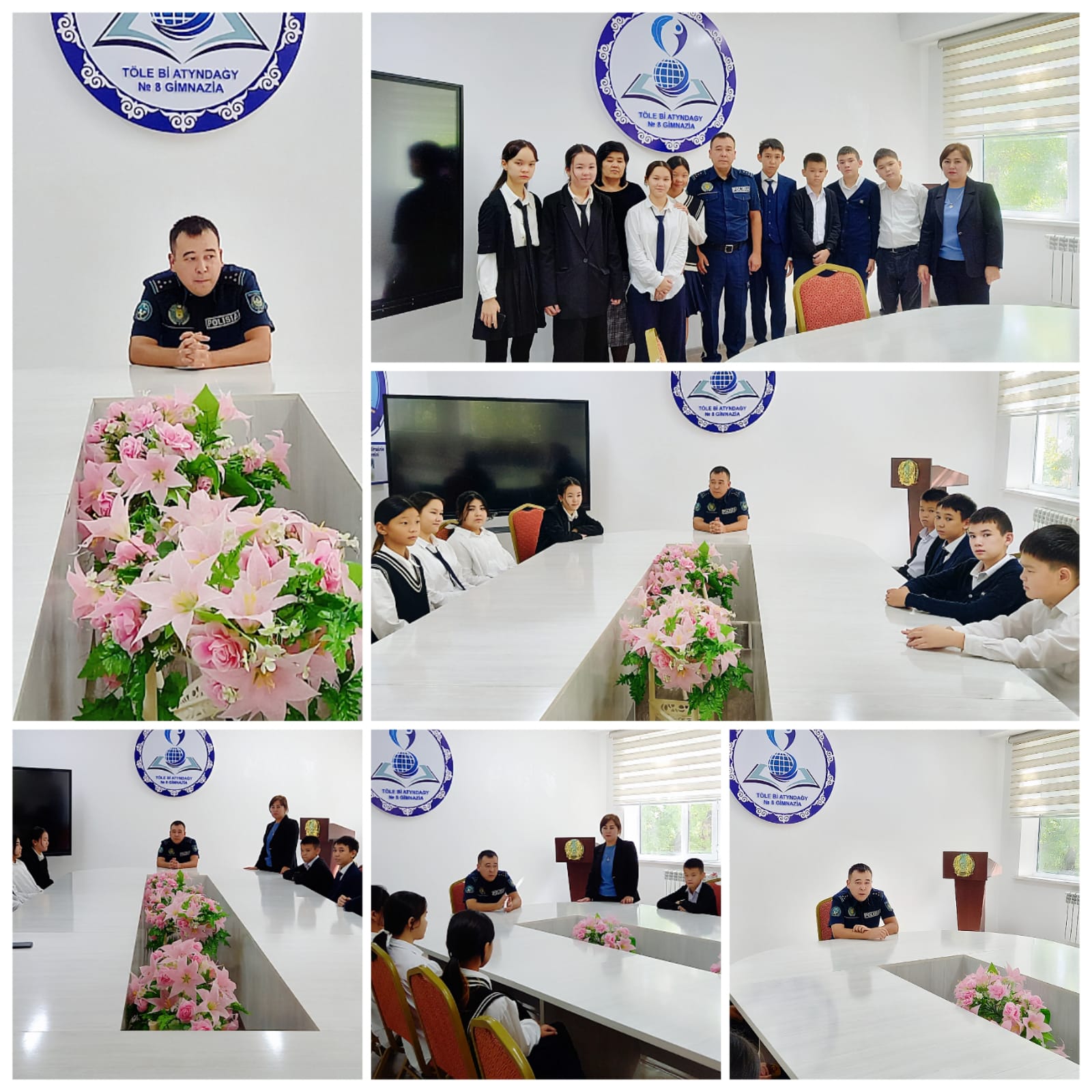 10 октябрь 2023 0 1 2 3 4 5 Түлектердің жұлдызды күні "Түлектердің жұлдызды күні " жобасы аясында 7"Ә" сынып білім алушылары мен гимназия түлегі Мусабеков Асхат Мамбеталиұлымен кездесу өткізілді. Түлек өз мамандығы туралы сыр шертіп, білім алушыларға мамандықты дұрыс таңдау жайлы өз ойымен бөлісті.