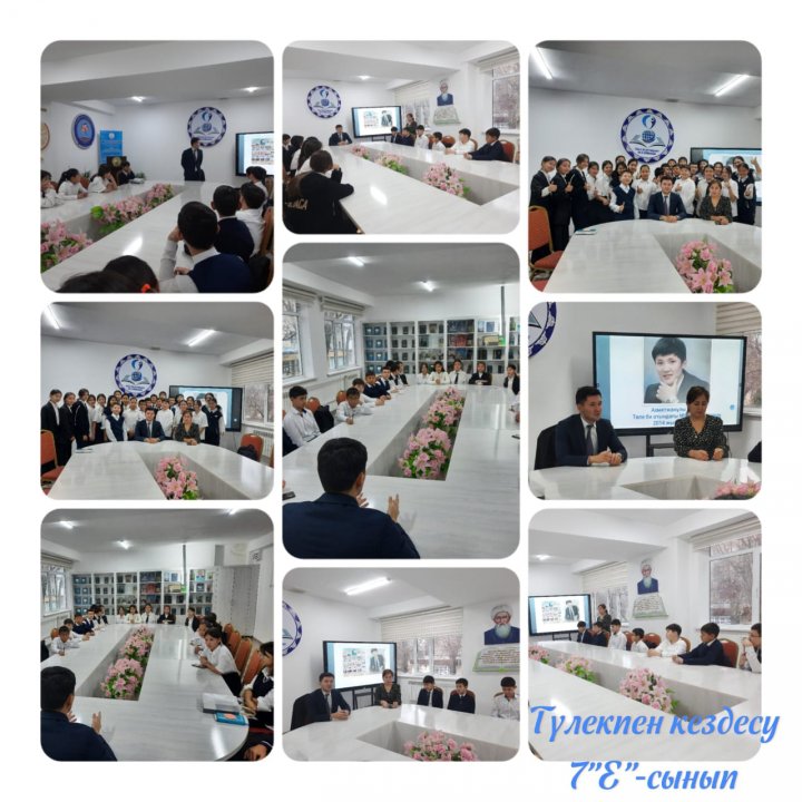 " Түлектердің жұлдызды күні " жобасы аясында 7"Е" сынып білім алушылары мен гимназия түлегі Жамбыл облысы департаментінің бас маманы Байзақ Ахметжанұлымен кездесу өткізілді. Кездесу барысында білім алушыларға кәсіптік бағдар беріп, мамандықты дұрыс таңдау жайлы өз ойымен бөлісті.