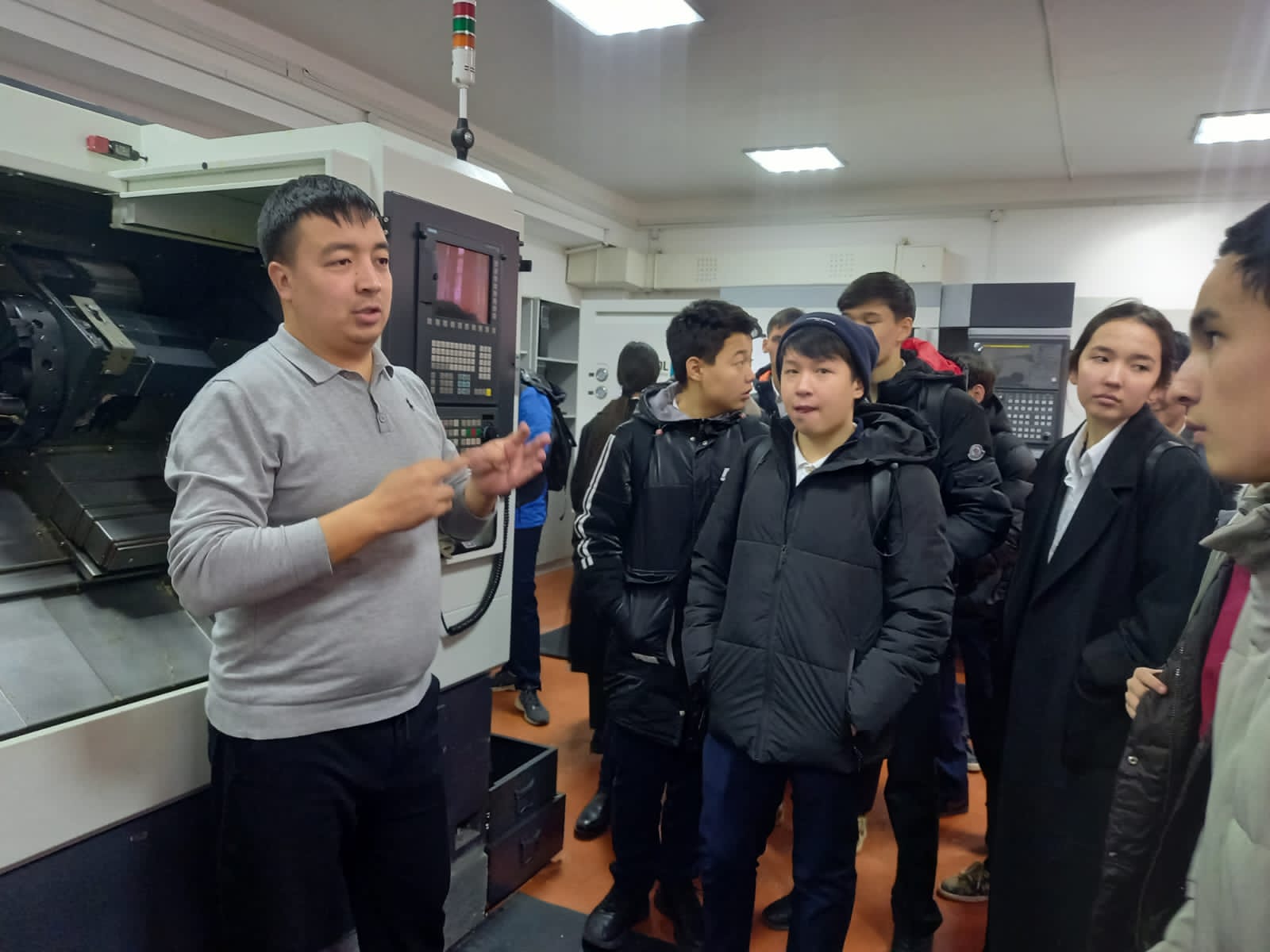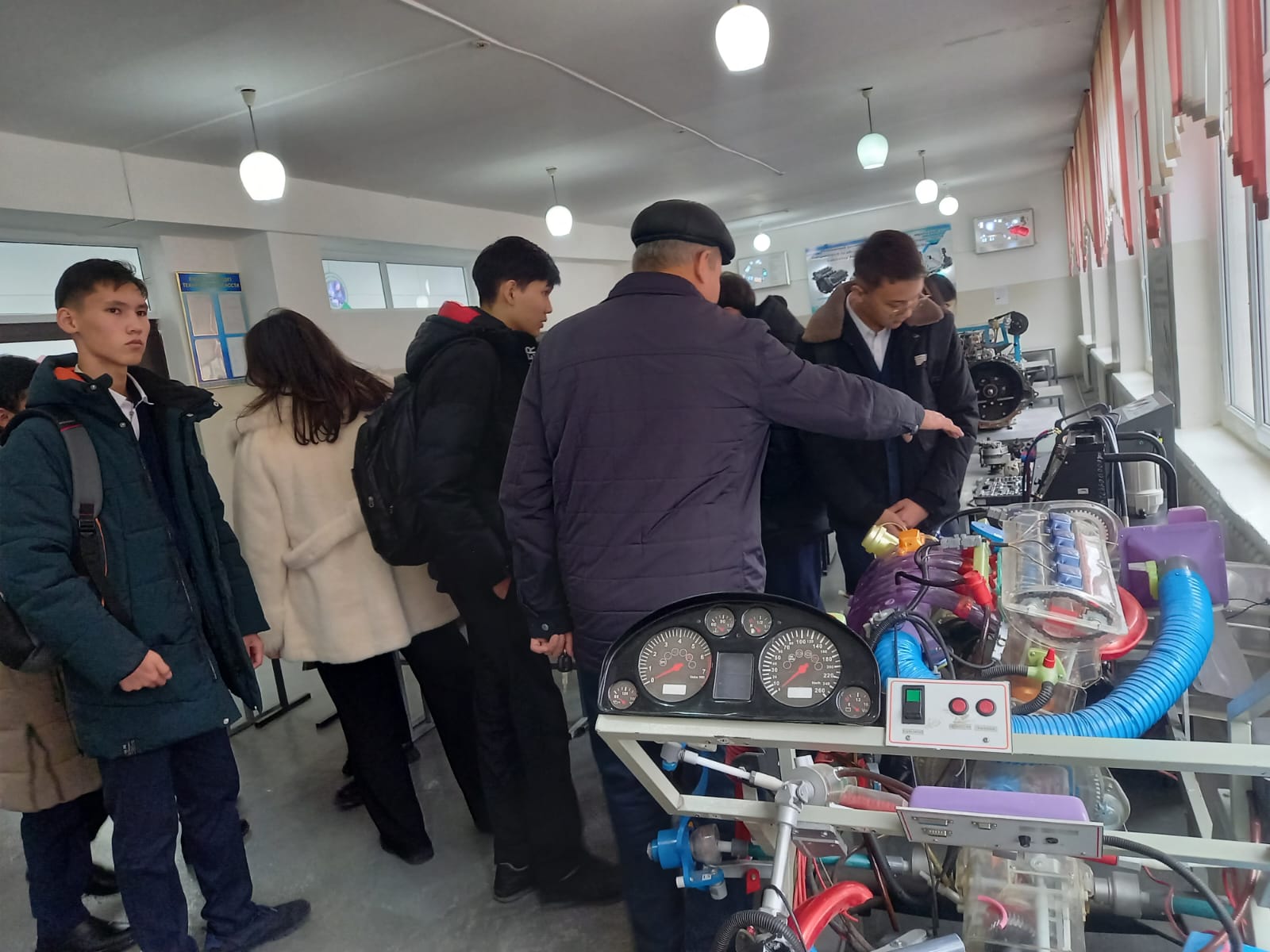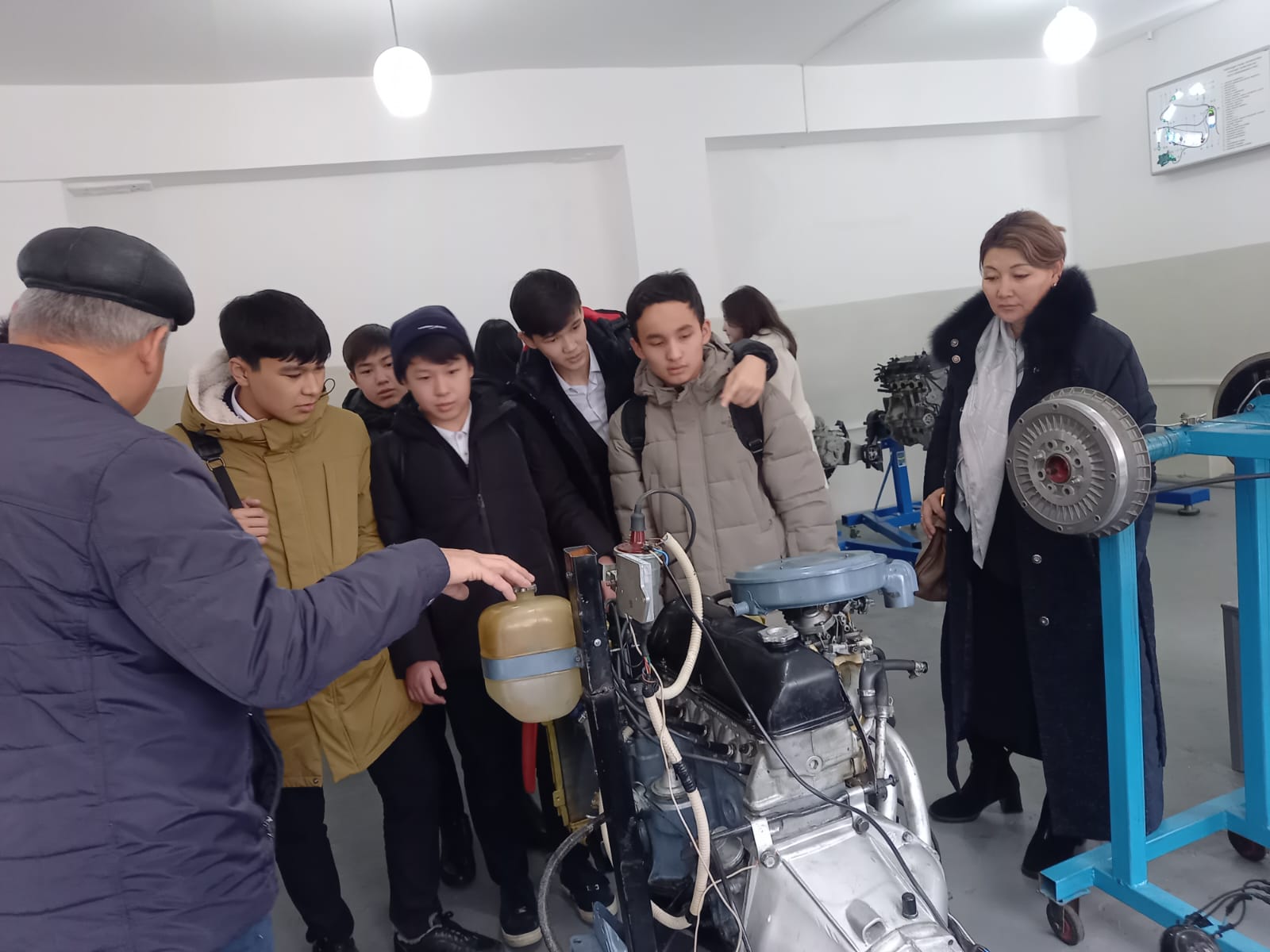 Кәсіптік бағдар беру мақсатында 9 "А" сынып білім алушылары Жамбыл политехникалық колледжіне экскурсия жасады. Тыныштыбаев Берик Асқарұлы автокөлікке қызмет көрсету және пайдалану мамандығына қызығушылық танытқан оқушыларды шеберханада орналасқан жаңа автокөлік құрылғыларымен, құзыреттілік орталық жұмыстарымен, IT орталықтарымен таныстырды.