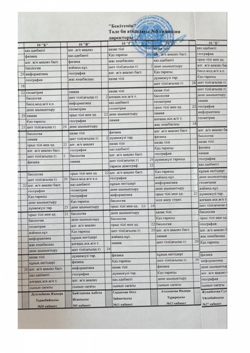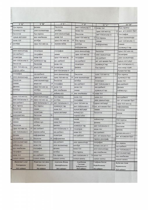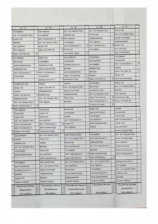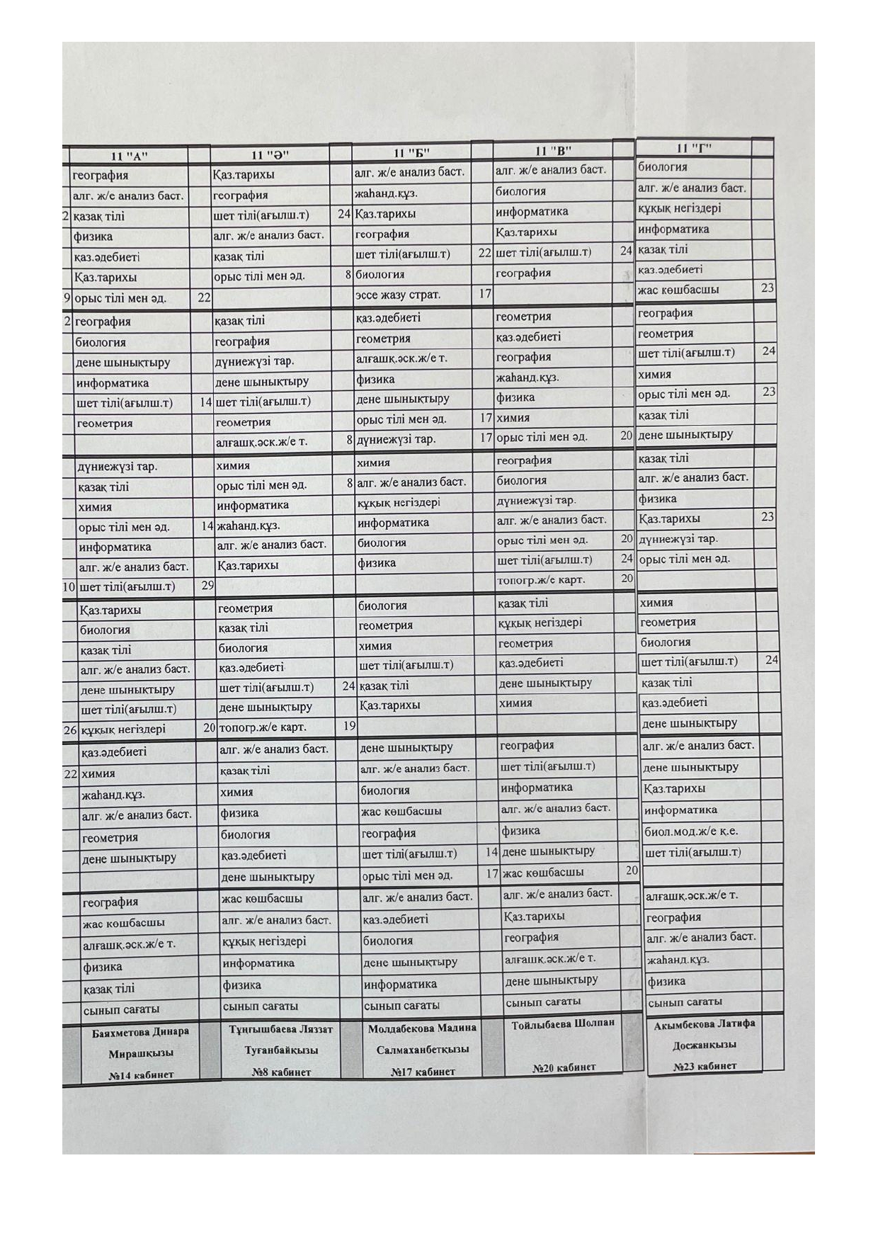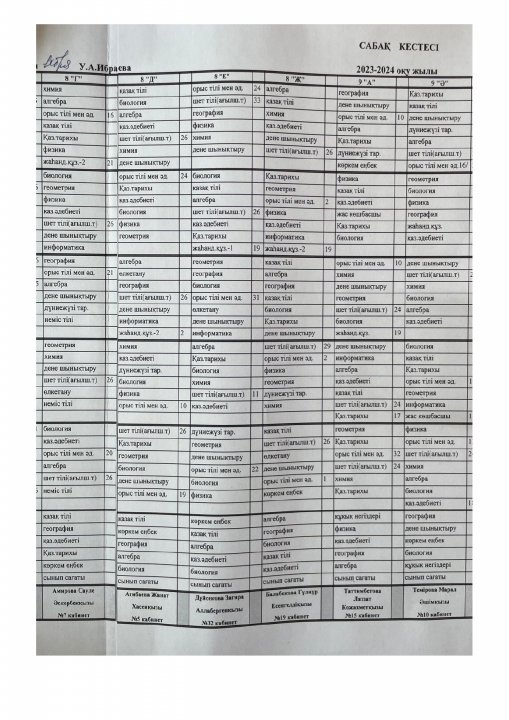 I-ауысым сабақ кестесі 2023-2024 оқу жылы