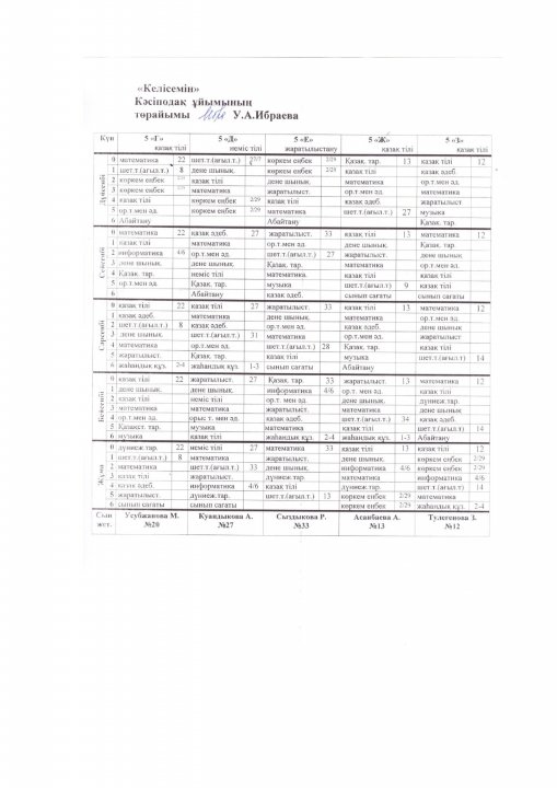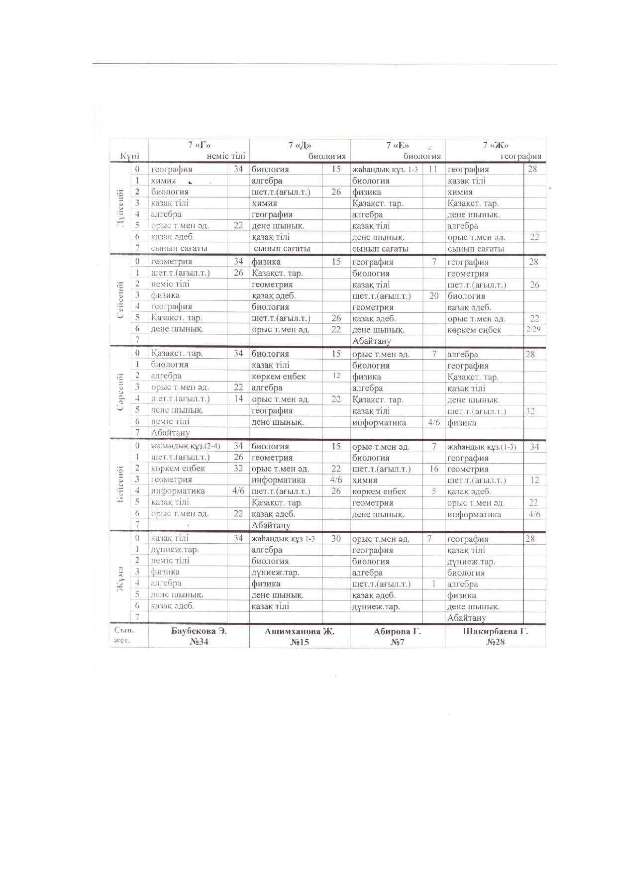 II-ауысым сабақ кестесі 2022-2023 оқу жылы