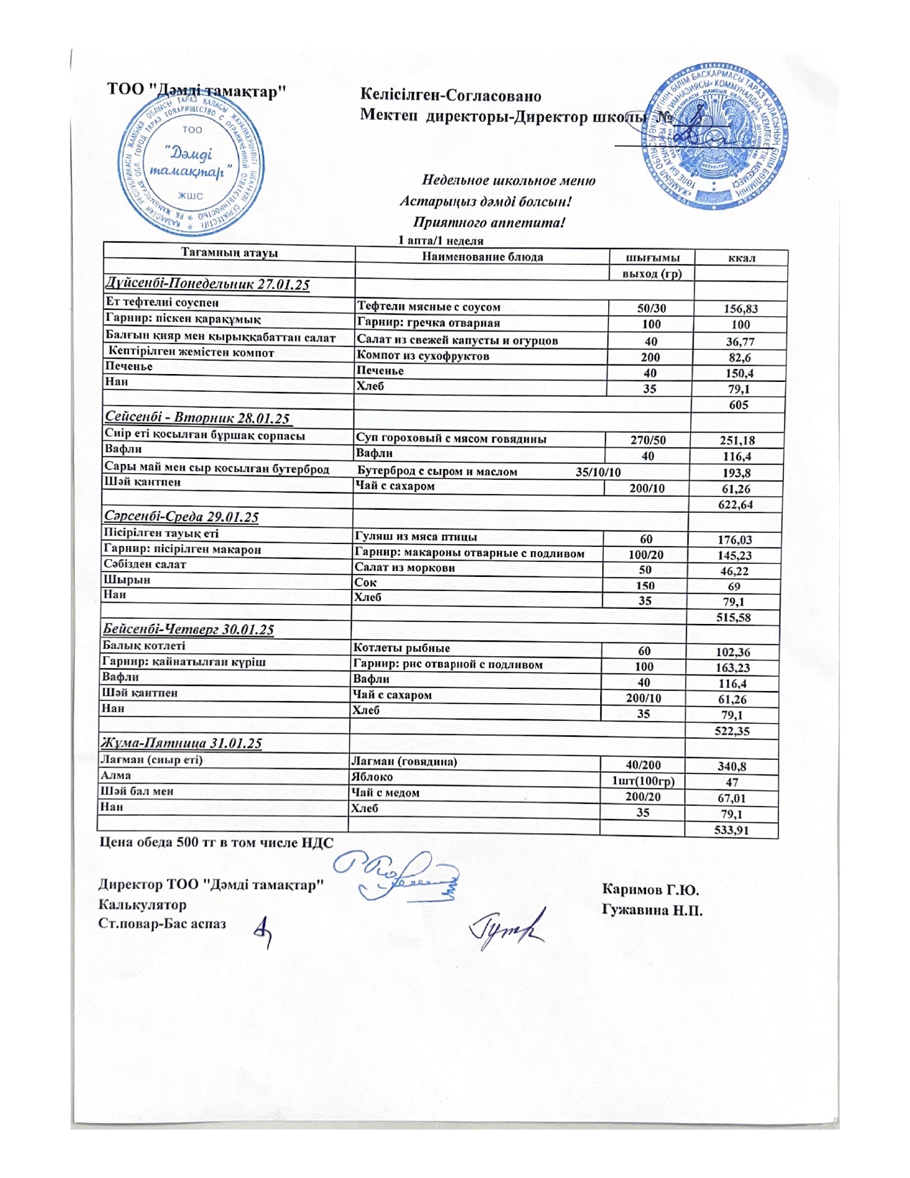 » » Ас мәзірі. 2025 жыл, ақпан. 1-ші апта.