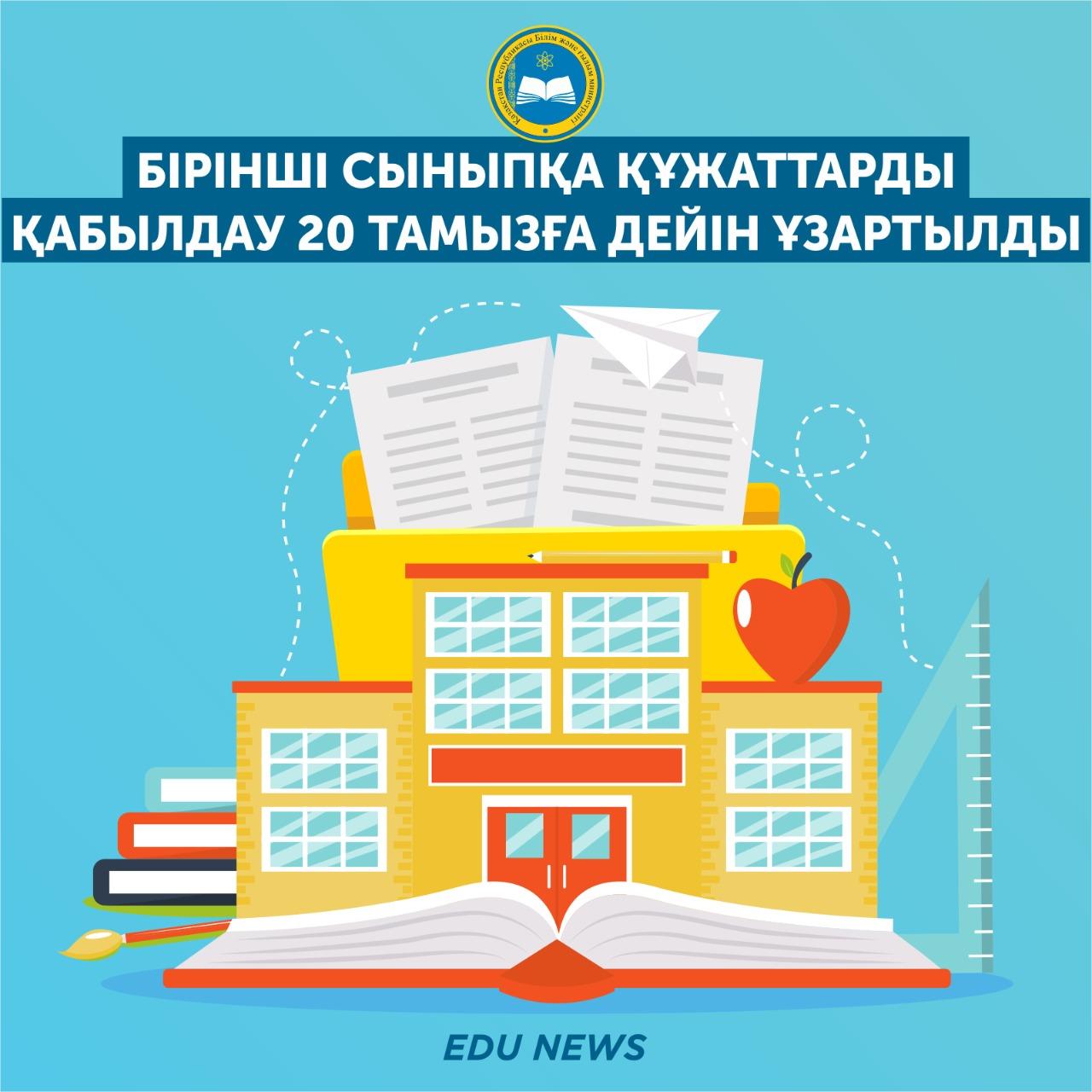 Елімізде карантиндік режимнің ұзартылуына байланысты ҚР Білім және ғылым министрлігі бірінші сыныпқа құжаттарды қабылдау мерзімін 20 тамызға дейін ұзартады. Бүгінгі күні 350 мыңға жуық өтініш түсті. Олардың басым көпшілігі egov.kz "электрондық үкімет" порталы арқылы қабылданды.