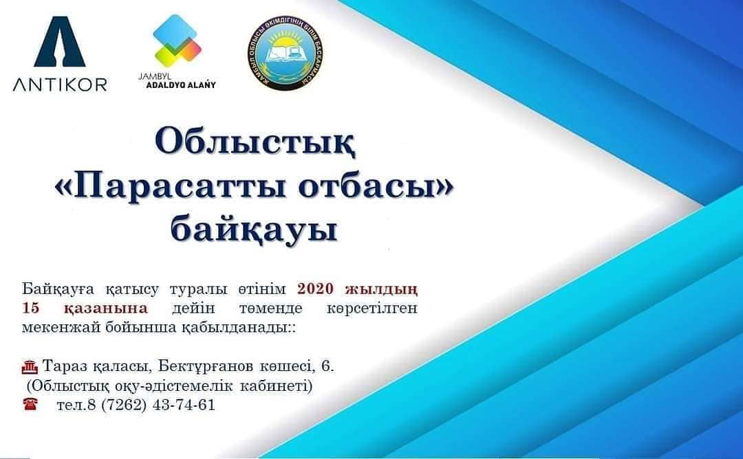 ҚР Сыбайлас жемқорлыққа қарсы іс-қимыл агенттігінің Жамбыл облысы бойынша департаменті, «Жамбыл – адалдық алаңы» жобалық офисі және Жамбыл облысы әкімдігінің білім басқармасы «Парасатты отбасы» онлайн байқауын өткізеді.