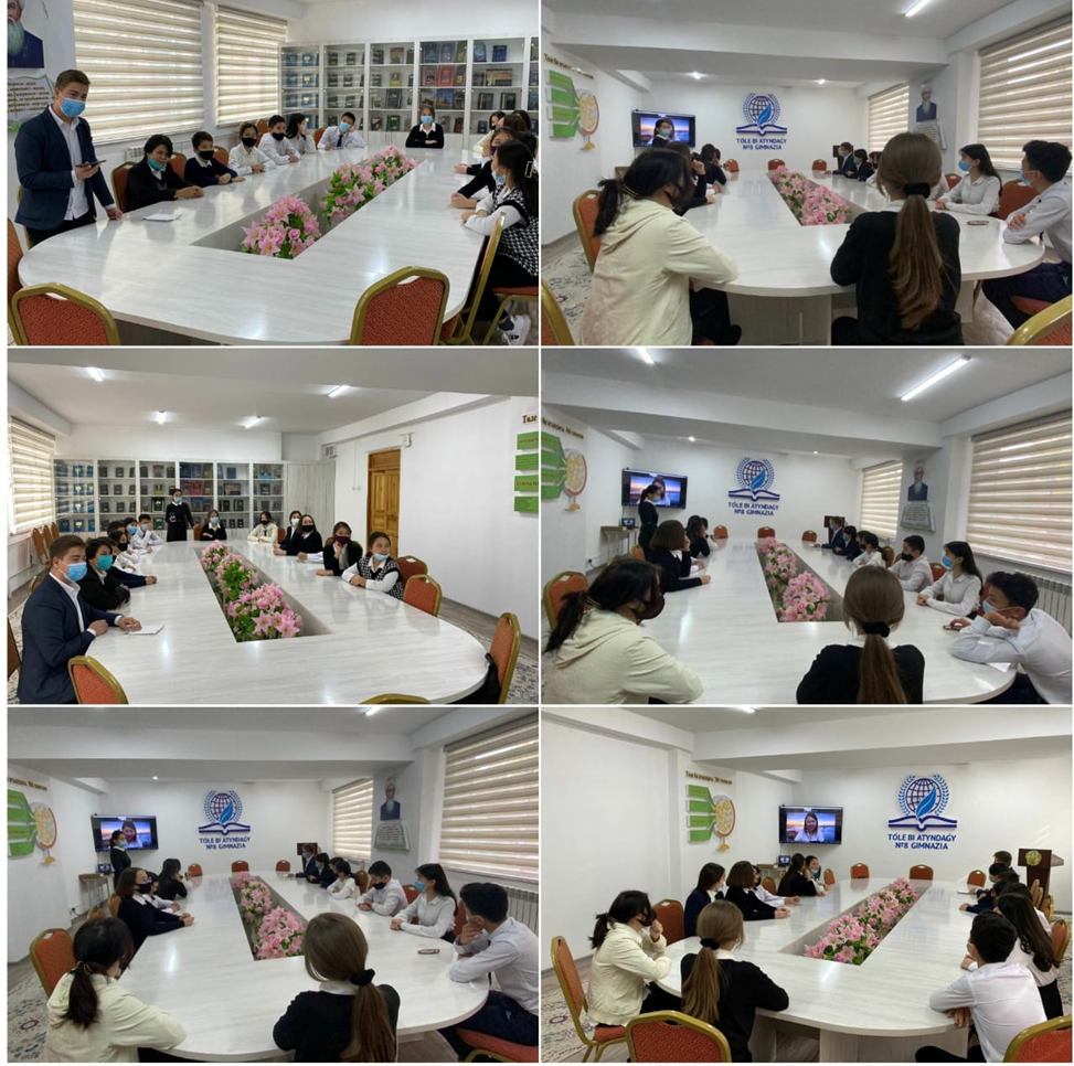 «Түлектердің жұлдызды күні» жобасы бойынша қараша айында 8 «Б» сыныбы білім алушылары сынып жетекші ЖДузельбаеваның ұйымдастыруымен гимназияның 2003 жылғы түлегі, Ақтау қаласындағы ағылшын тілі пәнінің мұғалімі Таджибаева Дина Темирхановнамен кездесу өткізді. Білім алушылар ағылшын тілінде сұрақтар қойып, болашақ кәсіптік мамандықтар туралы пікір алысты..