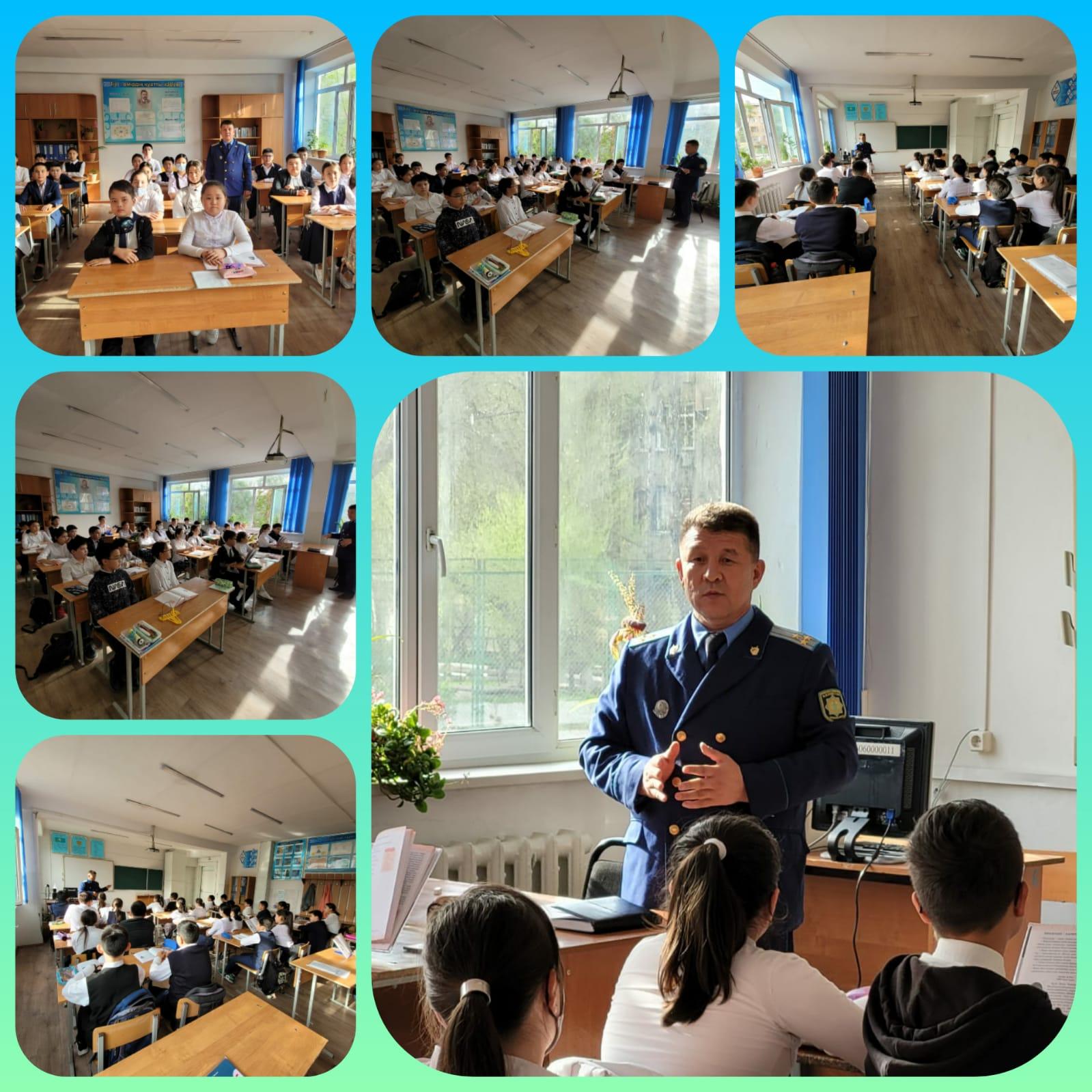 Төле би атындағы №8 гимназиясында "Табысты үштік" жобасы аясында ата-аналар тәрбие сағаттарын жүргізуде. 6 "В" сынып ата-анасы, Жамбыл облысы прокурорының аға көмекшісі,аға әділет кеңесшісі Қуанышев Еркін Тілешұлы тәрбие сағатын өтті.