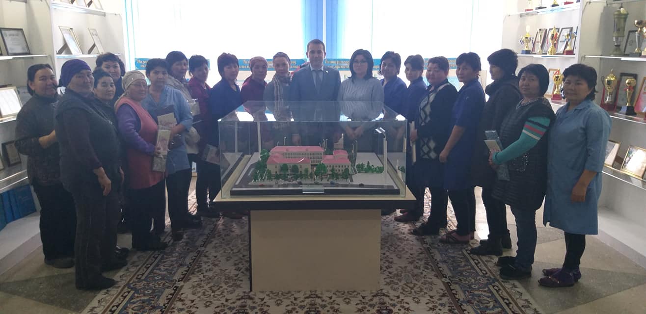 Төле би атындағы №8 гимназия » Іс-шаралар » Құттықтаймыз! » Гимназия директоры Ә. Әзімбай гимназияның кіші қызметкерлерін қабылдап, 8 наурыз Халықаралық әйелдер күні мерекесімен құттықтап, сый-сыйапат жасады.