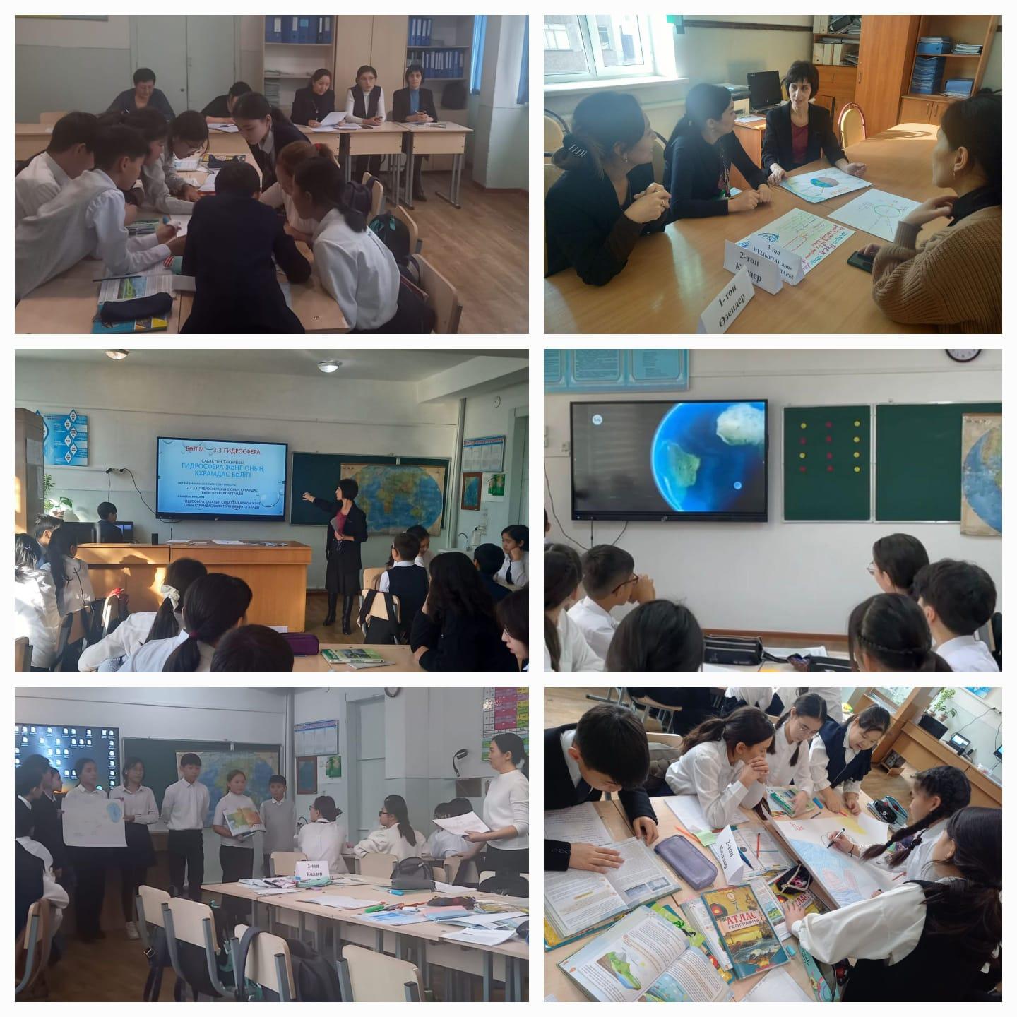"Мұғалім тәжірибесіндегі зерттеу" үдерісі аясында жаратылыстану кафедрасында "География сабағында зерттеуге бағытталған тапсырмалар арқылы білім алушылардың экологиялық сауаттылығын қаншалықты қалыптастыруға болады?" зерттеу сұрағымен фокус тобы жұмыс атқаруда. Тақырыбы:Гидросфера және оның құрамдас бөлігі. 7 сынып