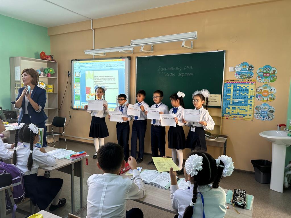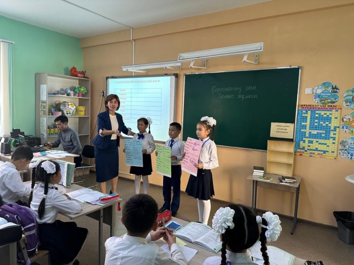 Жамбыл облысы әкімдігінің білім басқармасының оқу-әдістемелік орталығының жоспарына сәйкес “Сабақ Time” жобасы аясында бастауыш сынып мұғалімдеріне арналған “Саралап оқыту арқылы оқушылардың белсенділіктерін арттыру жолдары” тақырыбында өткен облыстық семинар-практикумда тілдік пәндерде оқушылардың ерекшеліктері мен қажеттіліктерін ескере отырып, саралау тәсілдерін тиімді қолдану мақсатында Төле би атындағы #8 гимназиясының бастауыш сынып мұғалімі Курманова Нургул Еркінқызы “Сөйлемнің бірыңғай мүшелері” тақырыбында шеберлік сынып көрсетті.
