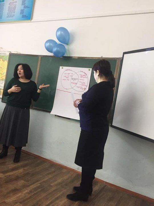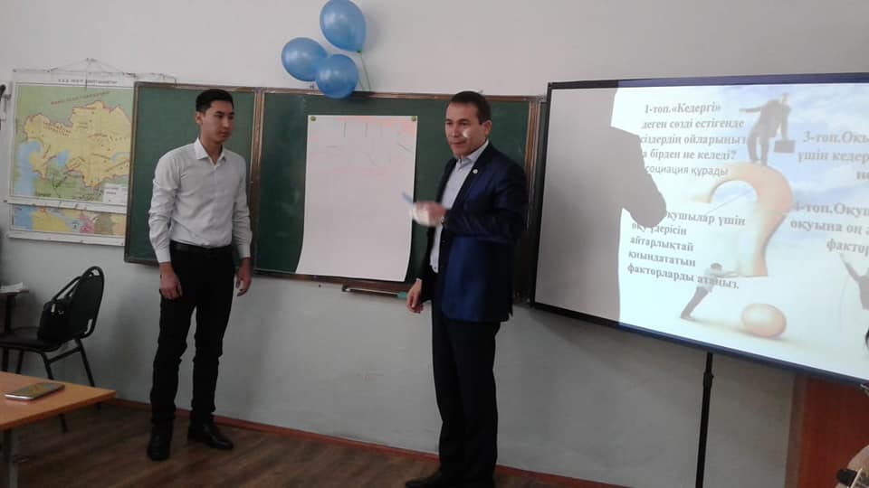 Қоғамдық-гуманитарлық пәндер бірлестігі аясында "Білім алушыларды ынталандырудың тиімді тәсілдері" тақырыбында өткен коучингтен көрініс. Жүргізген Г. А. Оразқұлова.