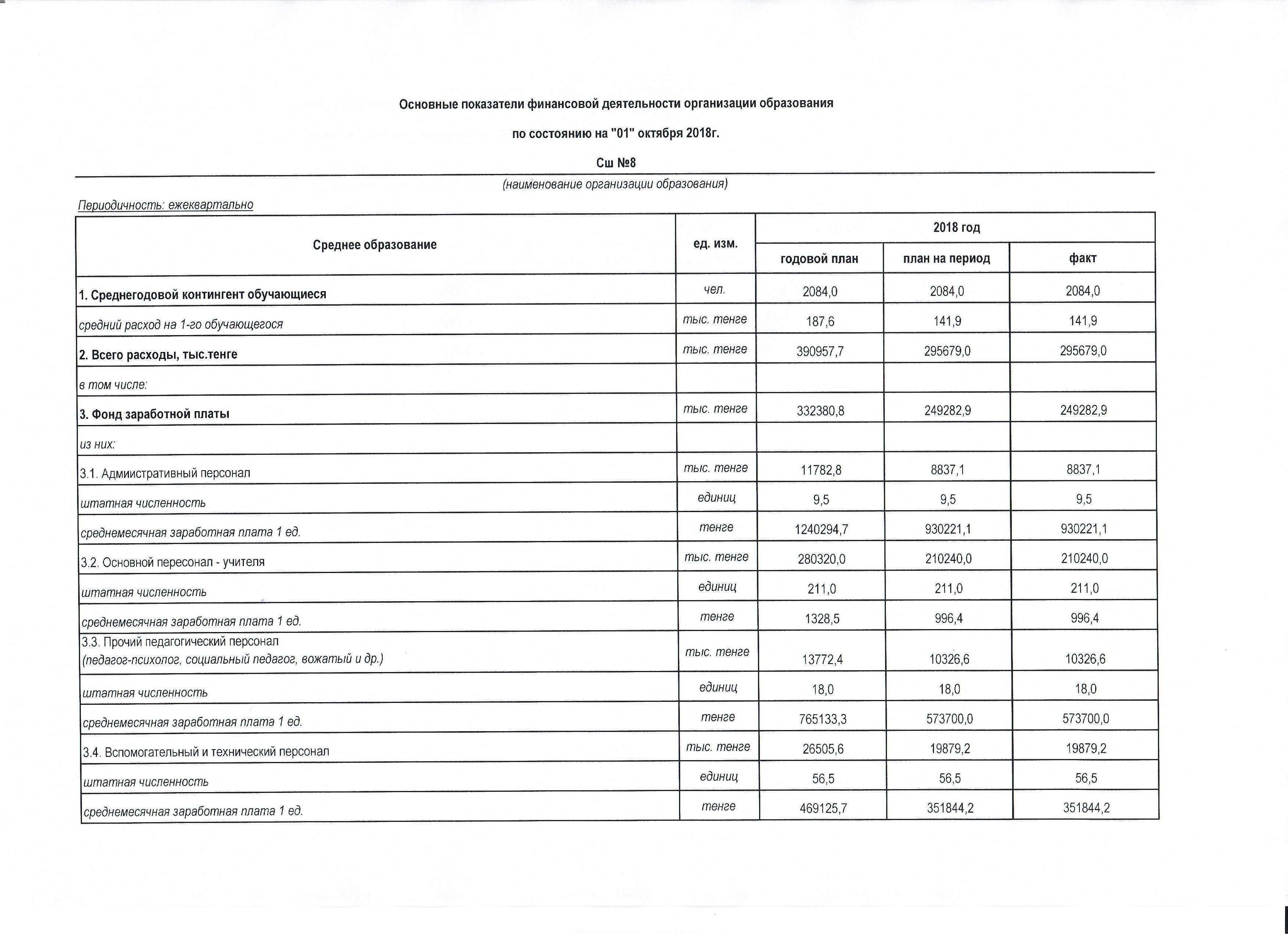 Қаржылық қызметтің негізгі көрсеткіштері » Төле би атындағы №8 гимназия