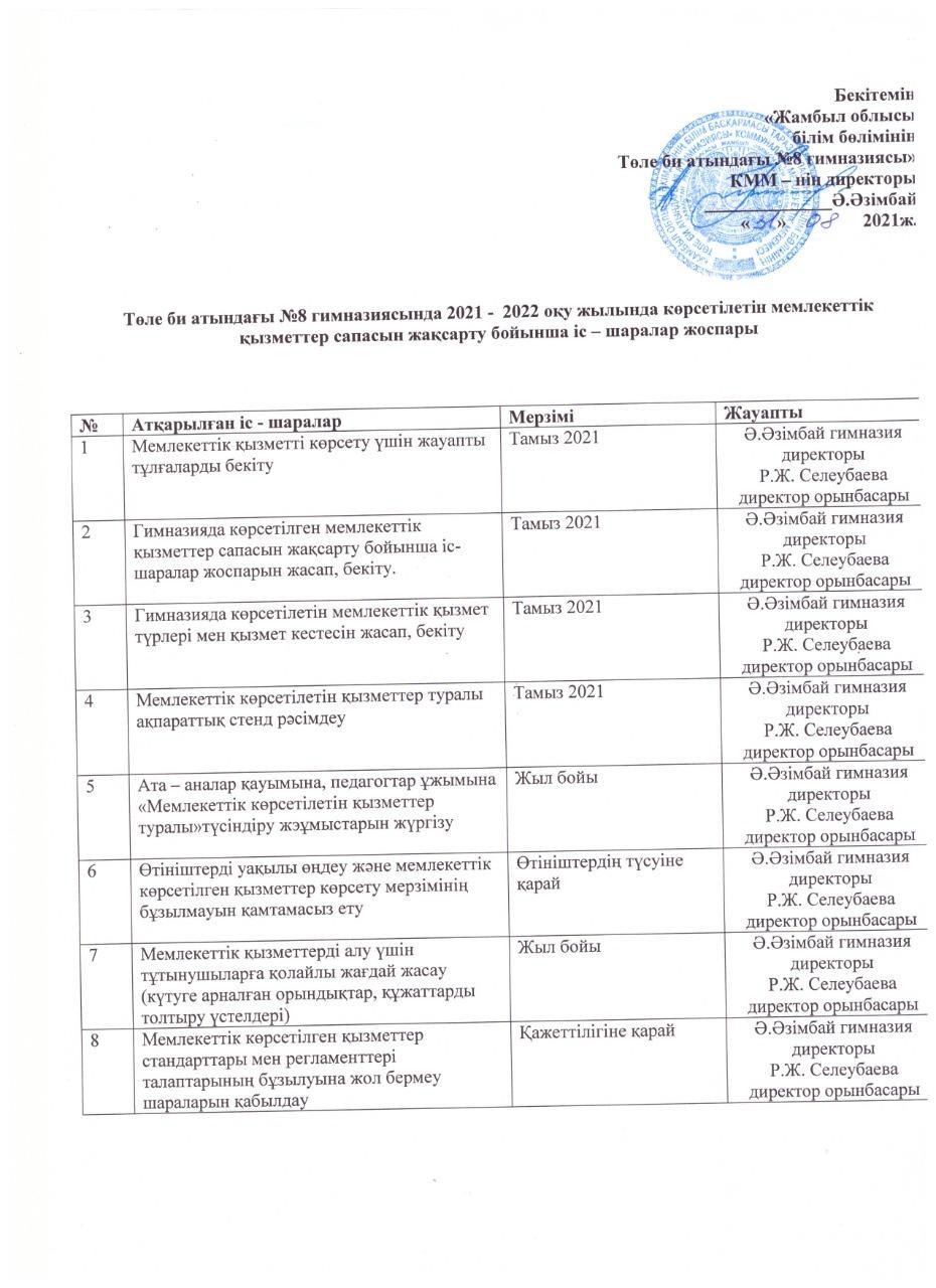 Жұмыс жоспары » Төле би атындағы №8 гимназия