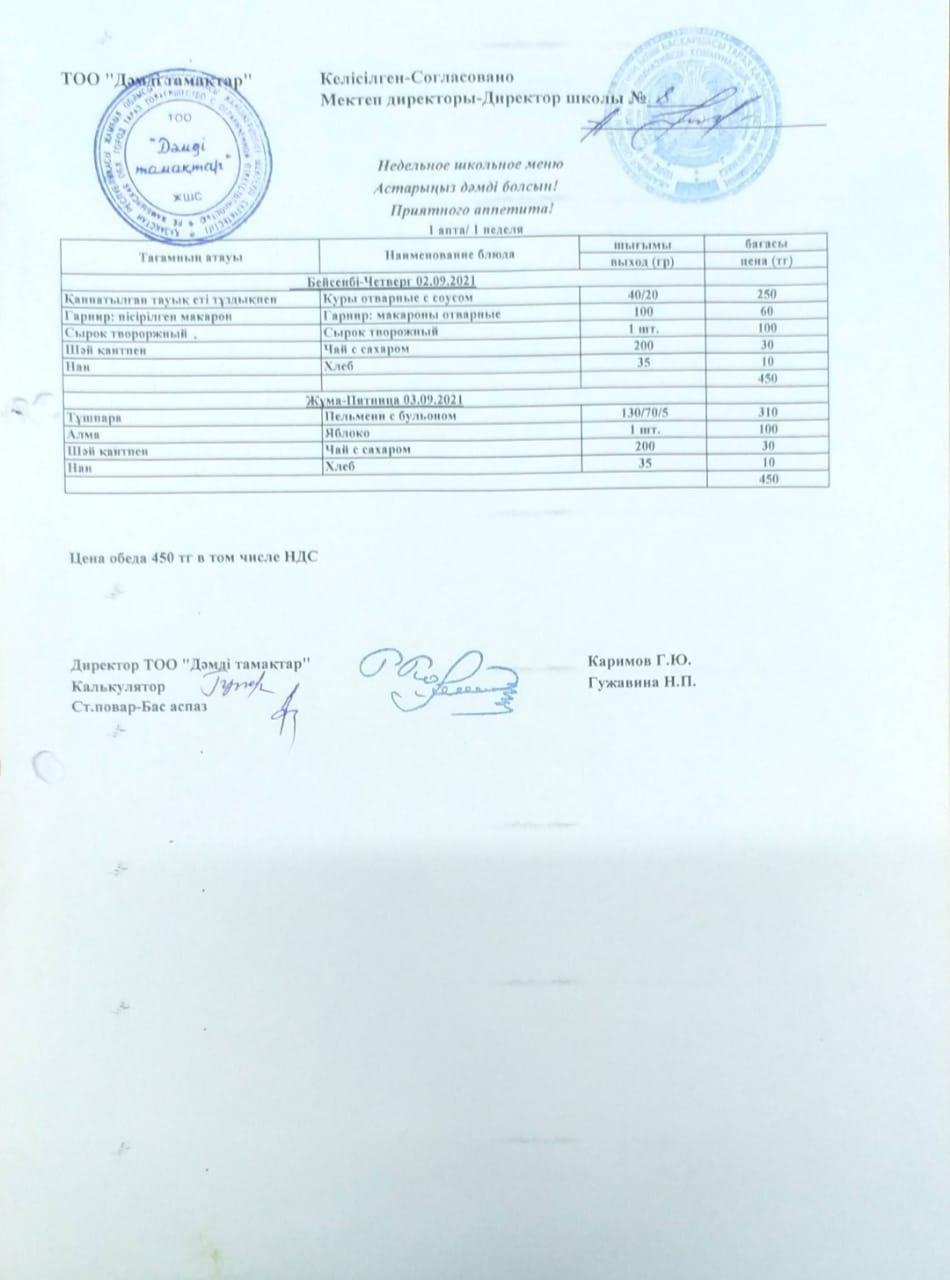 Ас мәзірі. 2-3 қыркүйек » Төле би атындағы №8 гимназия