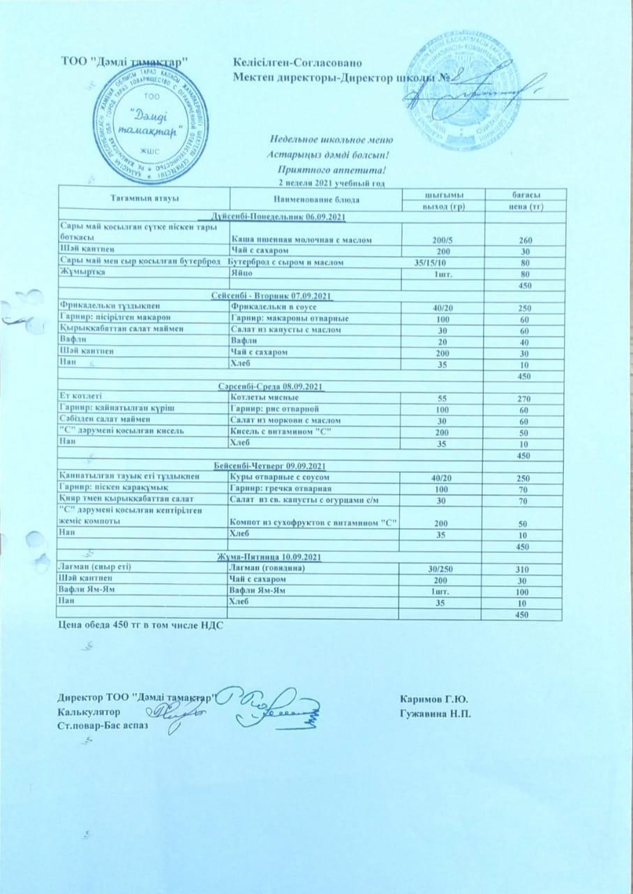 Ас мәзірі. 6-10 қыркүйек » Төле би атындағы №8 гимназия
