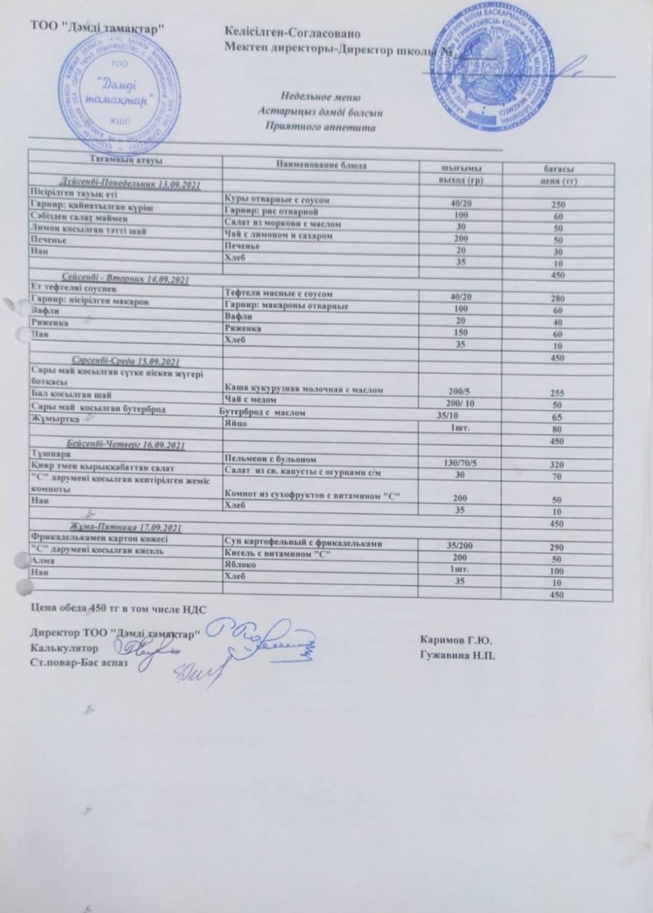 22 октябрь 2021 Ас мәзірі. 23 қазан