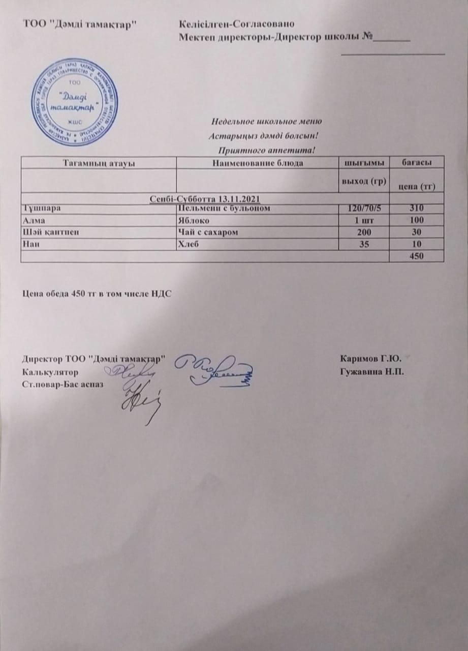 Ас мәзірі.13 қараша
