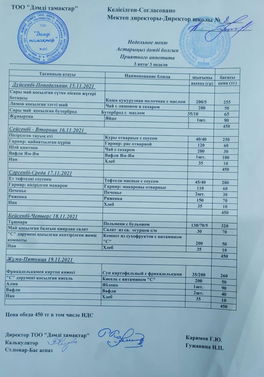 Ас мәзірі 13 қараша. » Төле би атындағы №8 гимназия