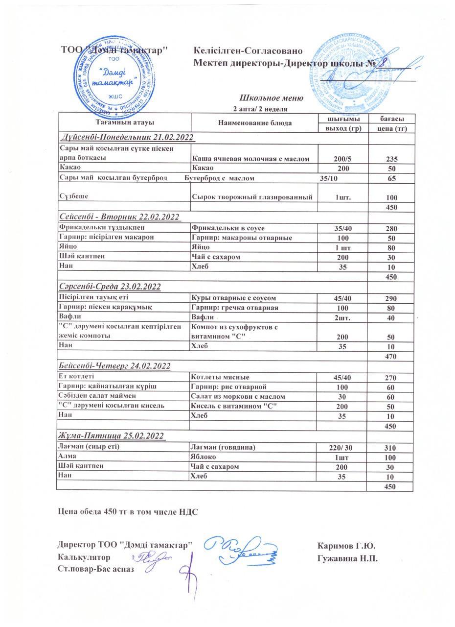 Ас мәзірі 21.02.22 - 25.02.2022 » Төле би атындағы №8 гимназия