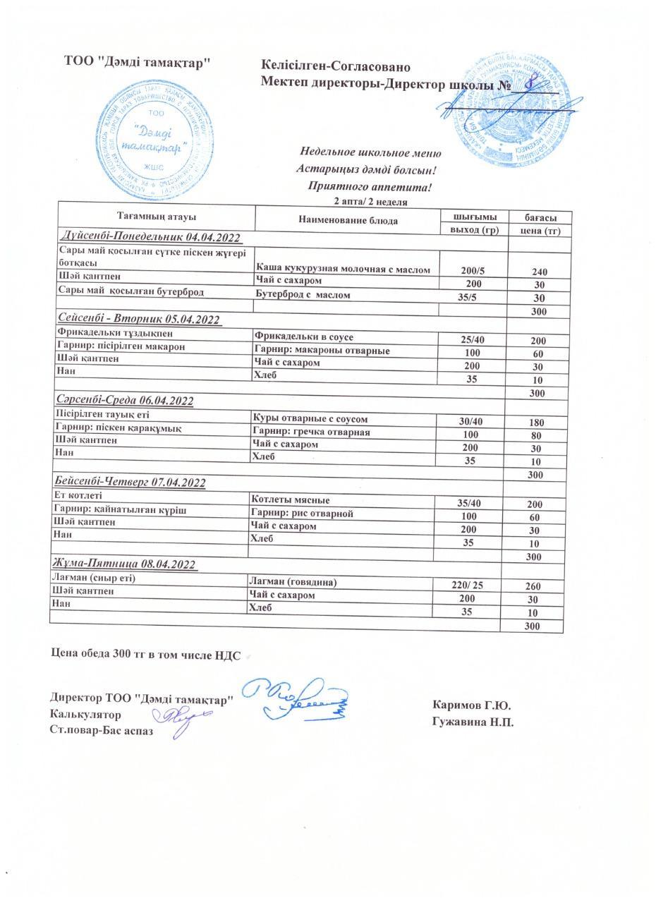 Ас мәзірі 04.04-08.04.2022 ж » Төле би атындағы №8 гимназия
