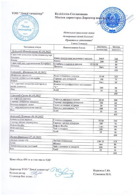 Ас мәзірі 3-7.10.2022 » Төле би атындағы №8 гимназия