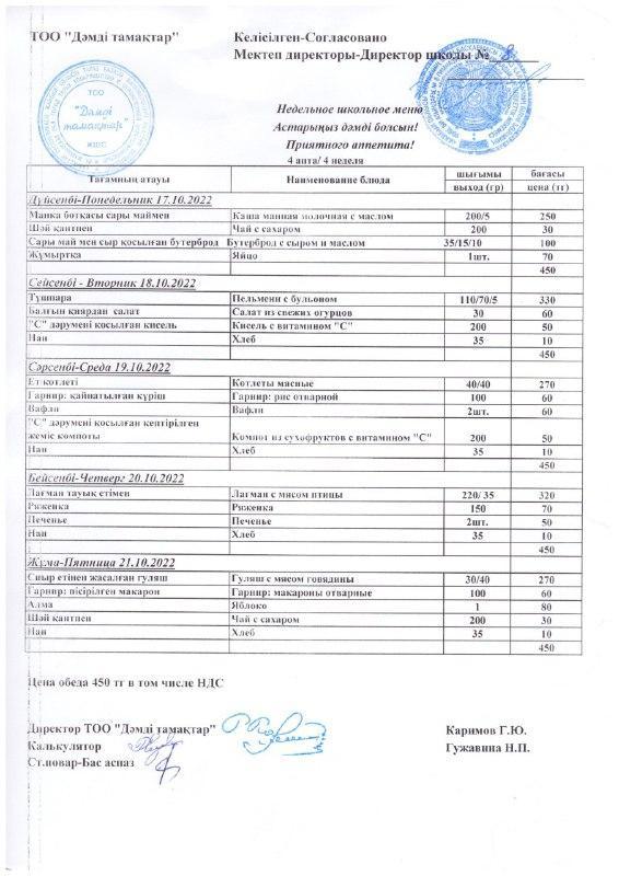 Ас мәзірі 17-21.10.2022 » Төле би атындағы №8 гимназия