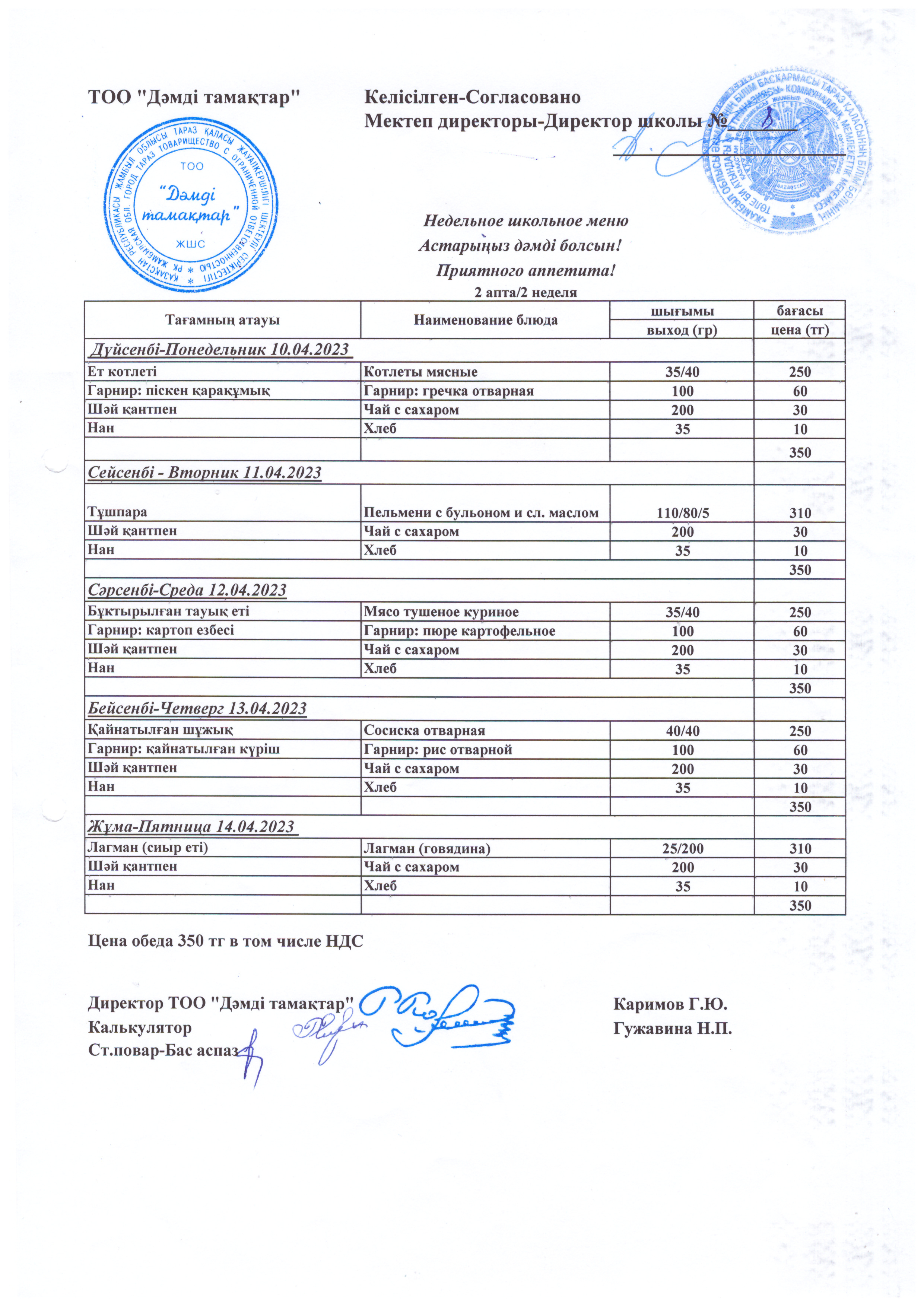 Ас мәзірі 10-14.04.2023 » Төле би атындағы №8 гимназия