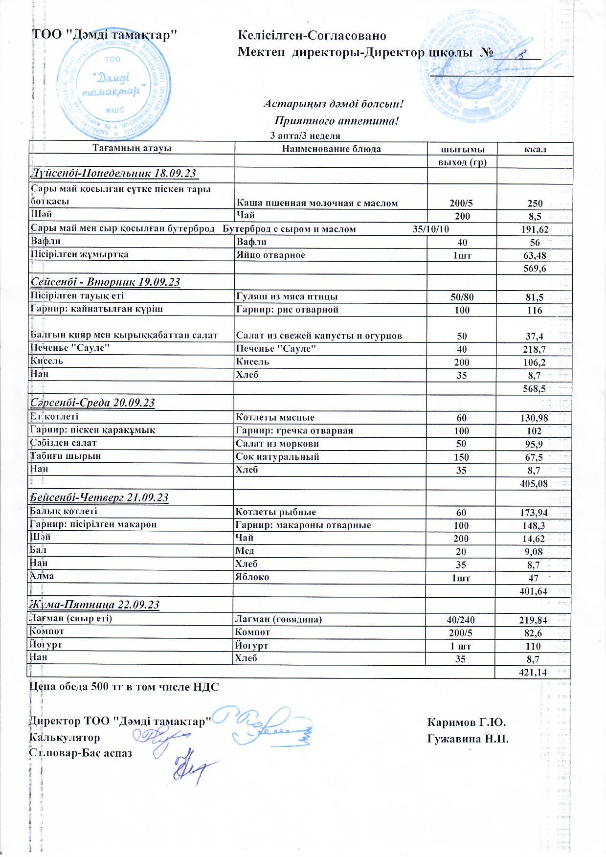 » » » Ас мәзірі. 2023 жыл, қыркүйек. 3-ші апта.