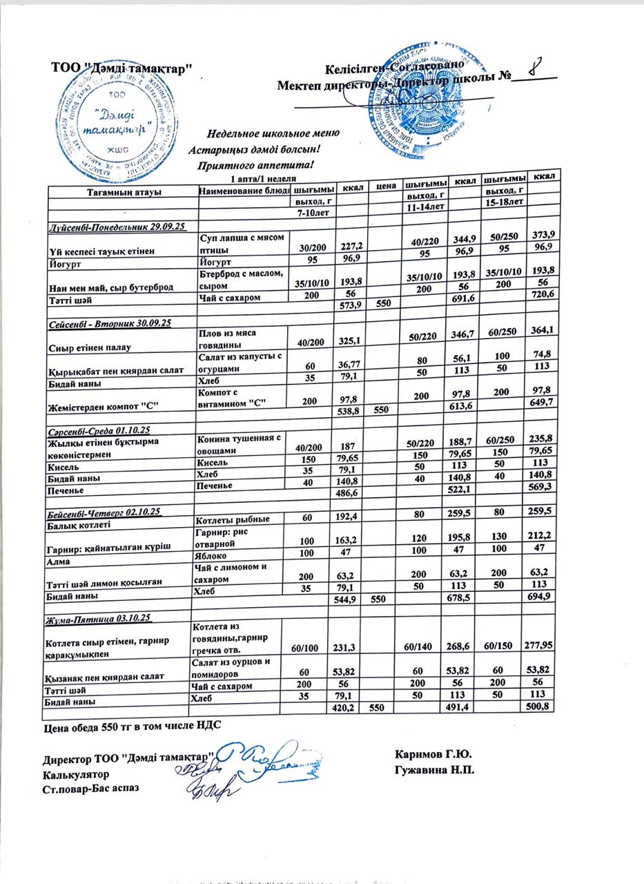 Қазан айы 1-апта ас мәзірі » Төле би атындағы №8 гимназия