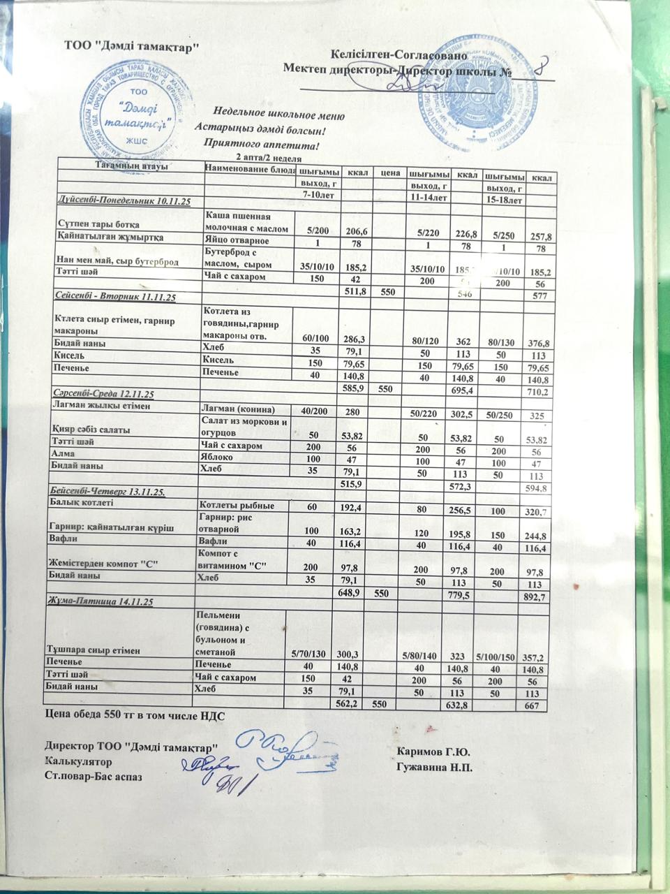 Ас мәзірі қараша 2-апта » Төле би атындағы №8 гимназия
