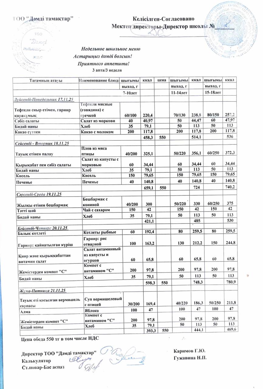Ас мәзірі қараша 3-апта