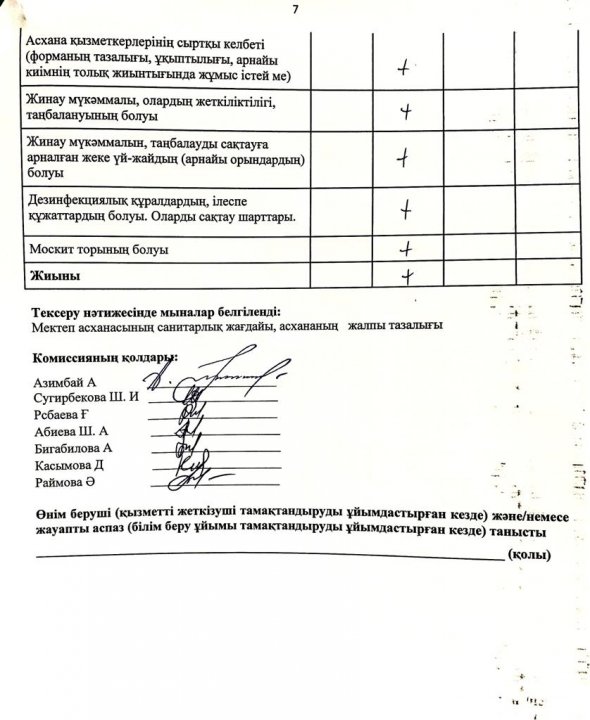 » » » Тамақтану сапасына мониторинг жүгізу актісі