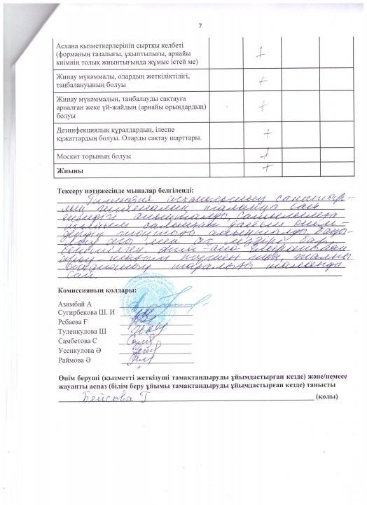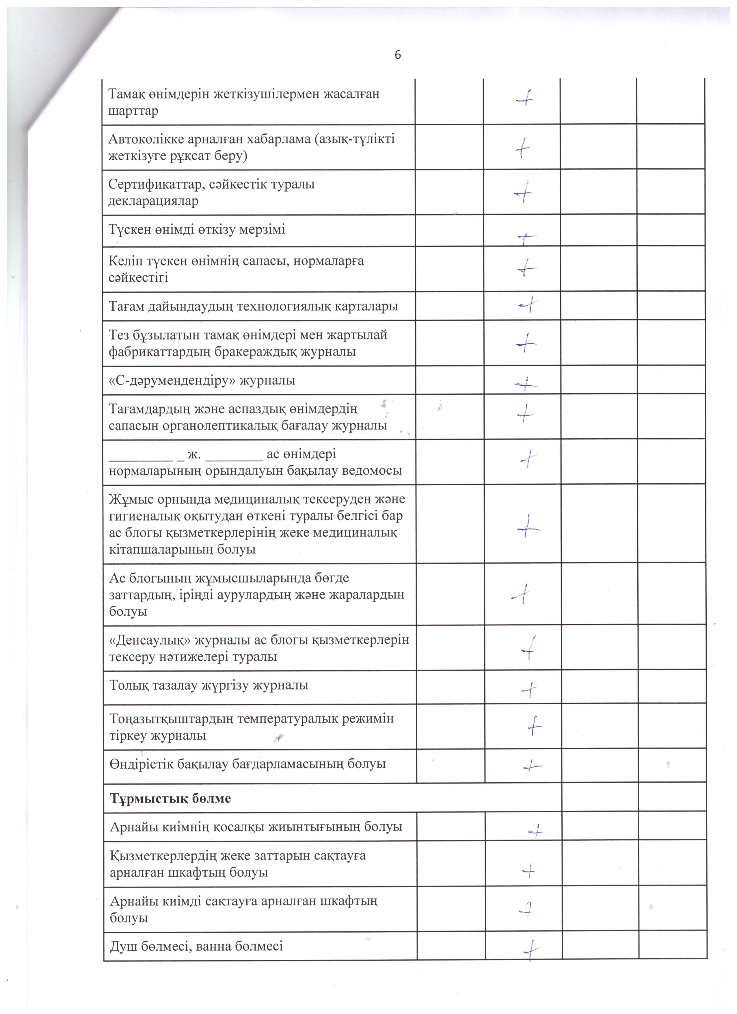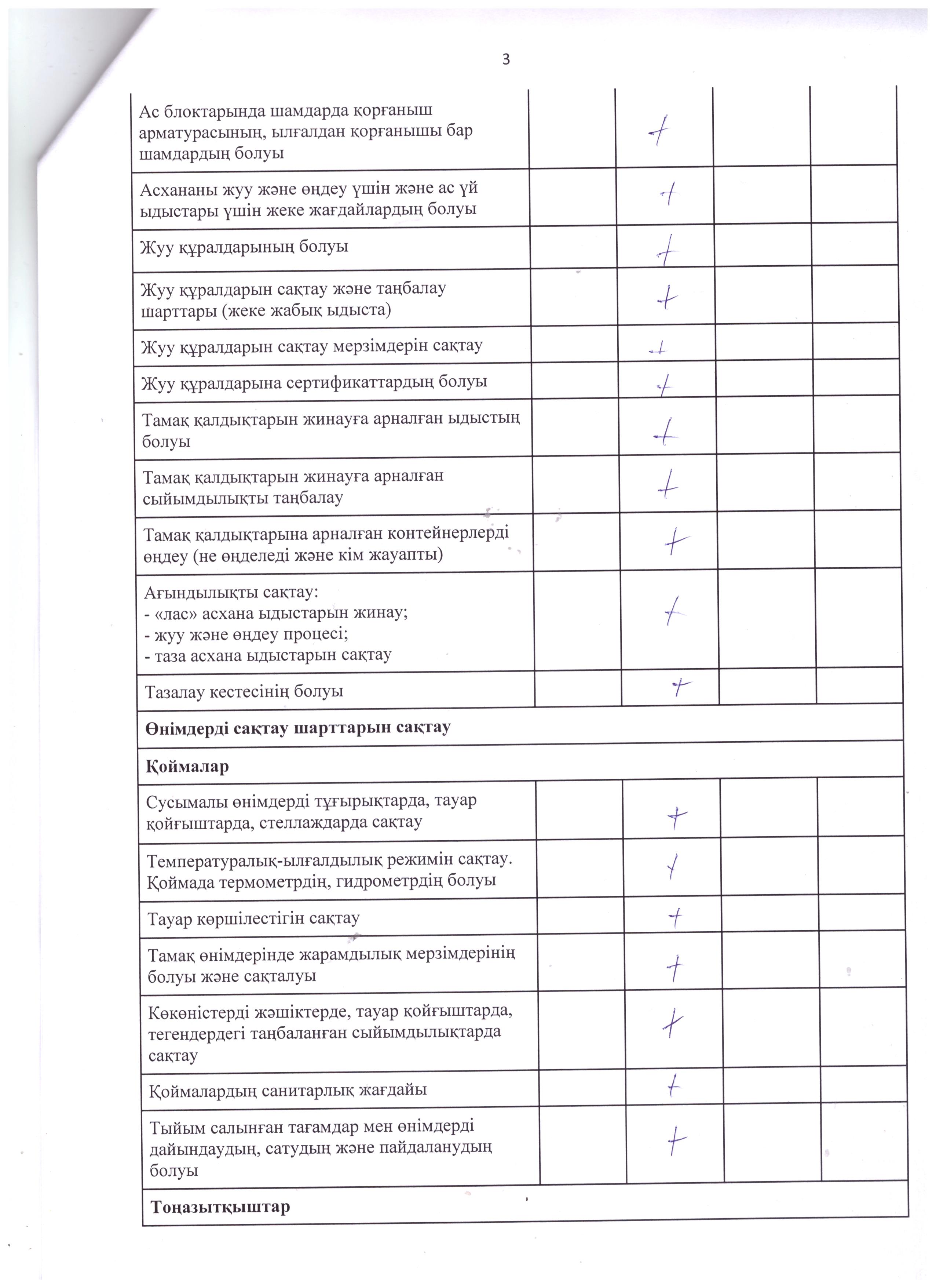 » » » Тамақтану сапасына мониторинг жүргізу актісі