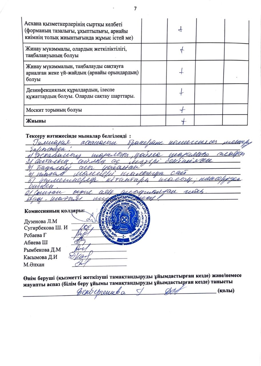 » » » Тамақтану сапасына мониторинг жүргізу актісі