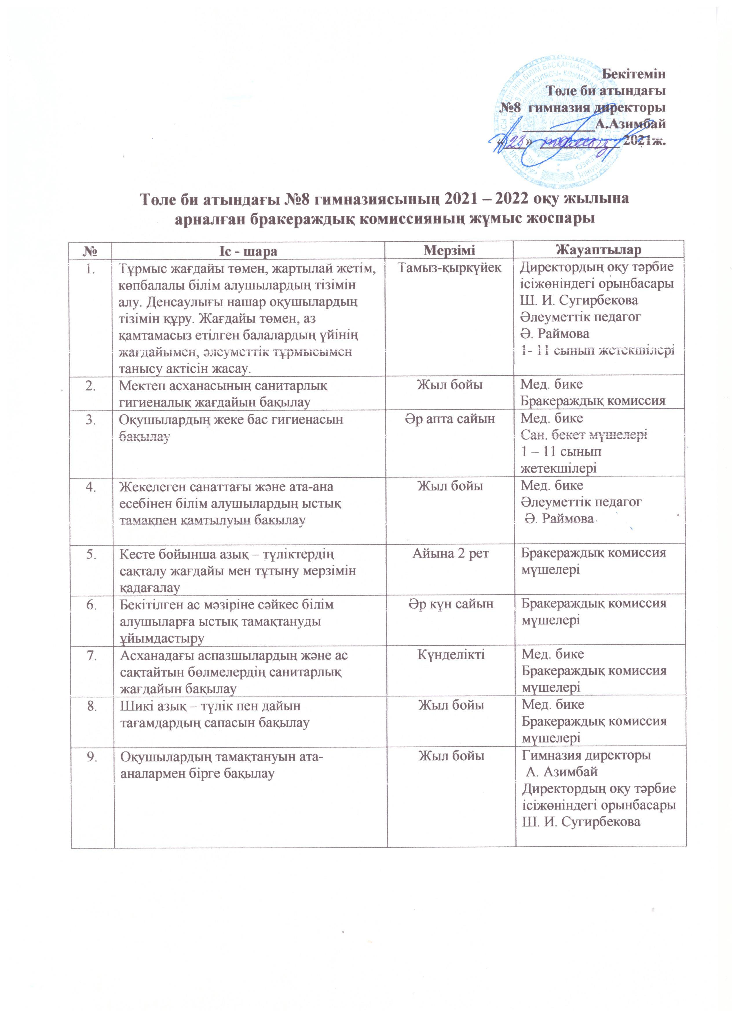 2021-2022 оқу жылында ыстық тамақты ұйымдастыру » Төле би атындағы №8 гимназия