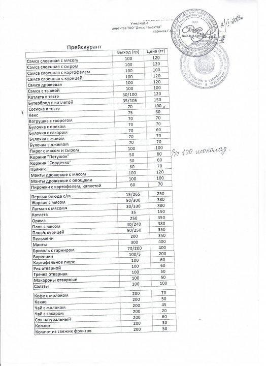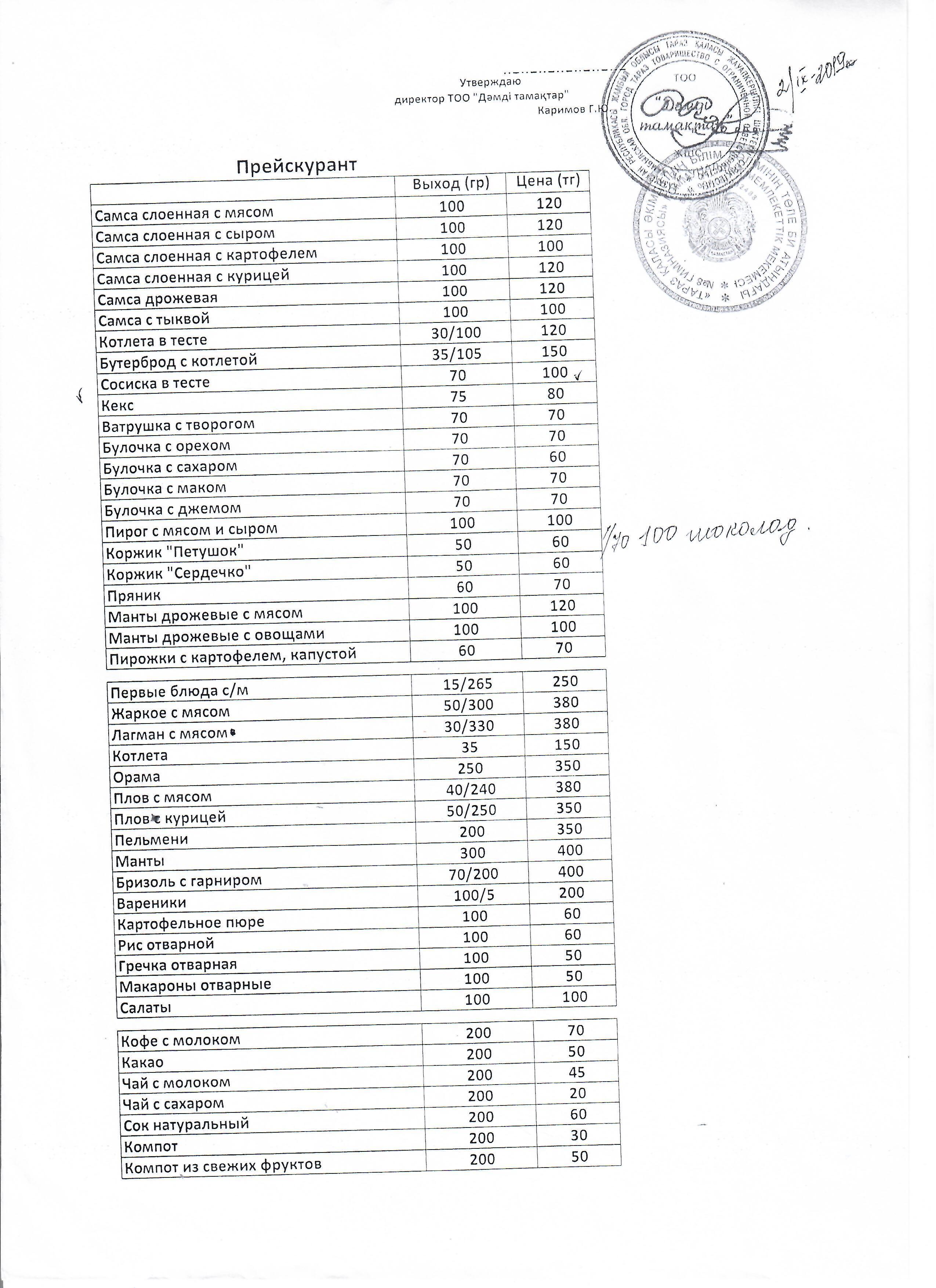 Прейскурант. 2019 жыл. Қыркүйек. » Төле би атындағы №8 гимназия
