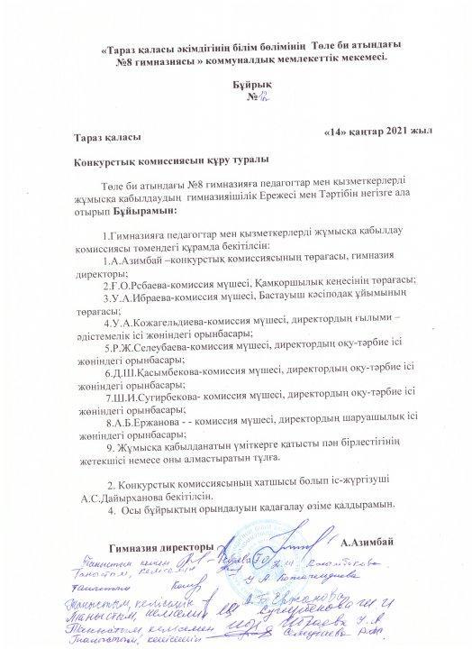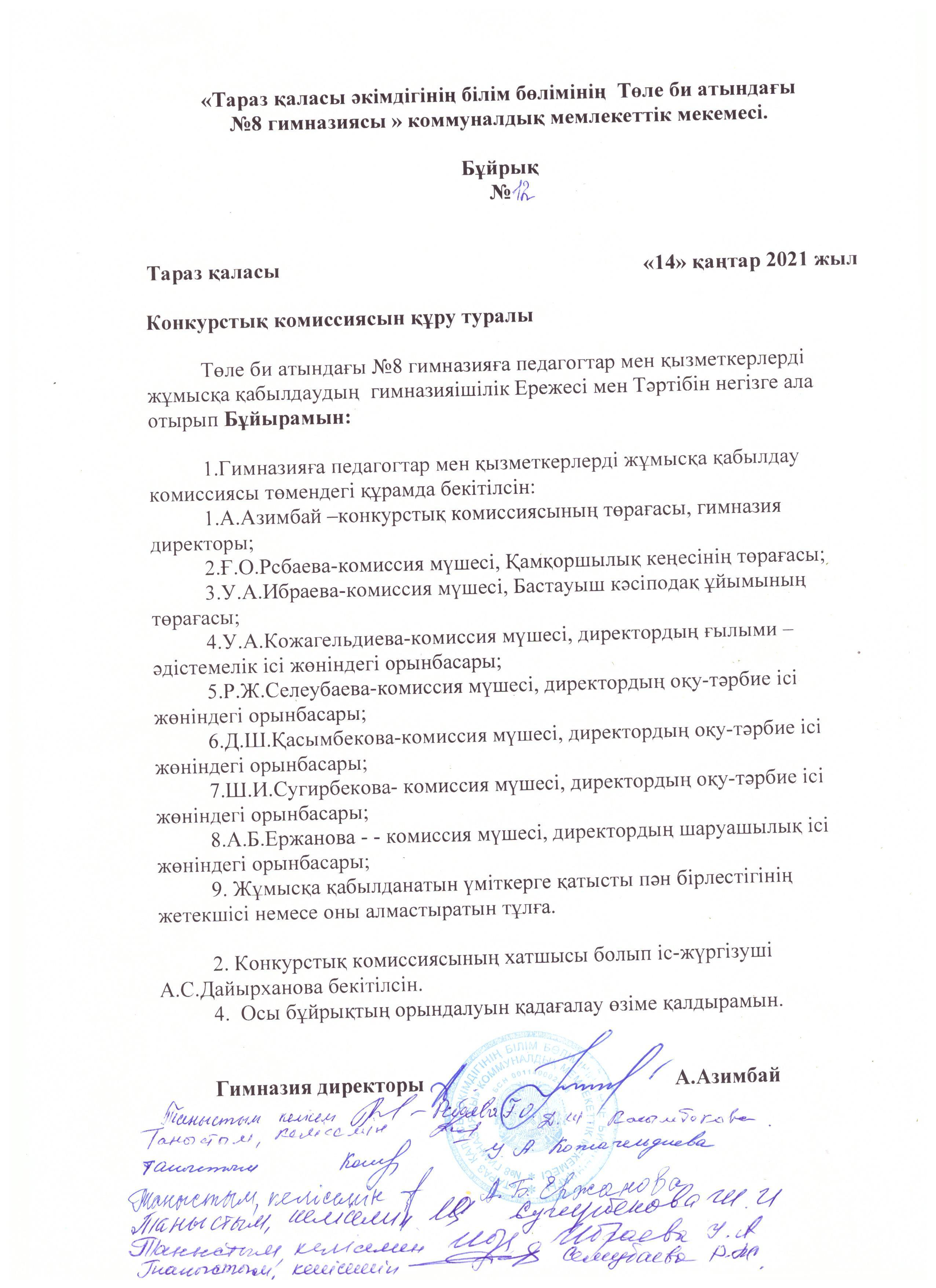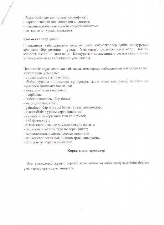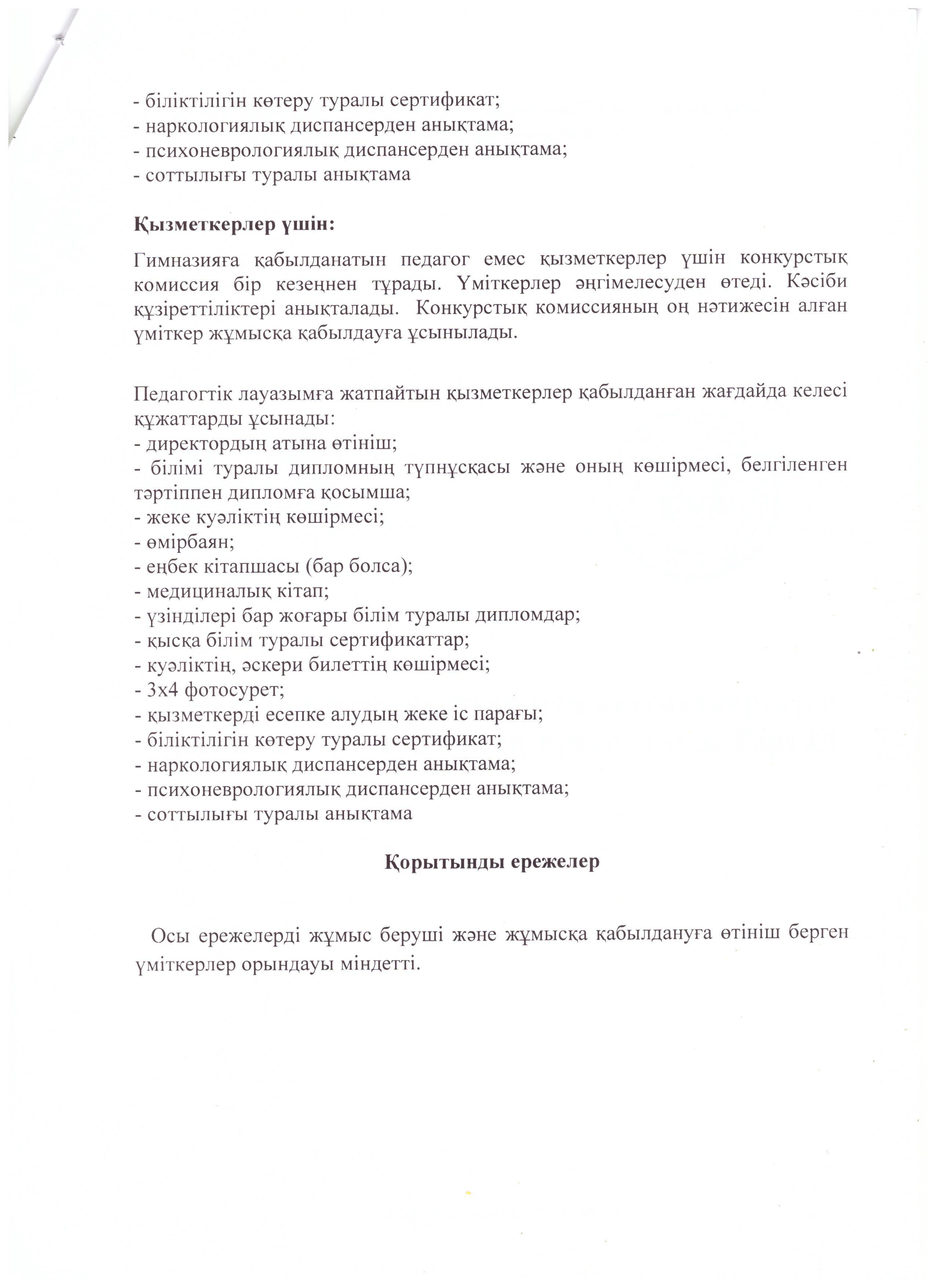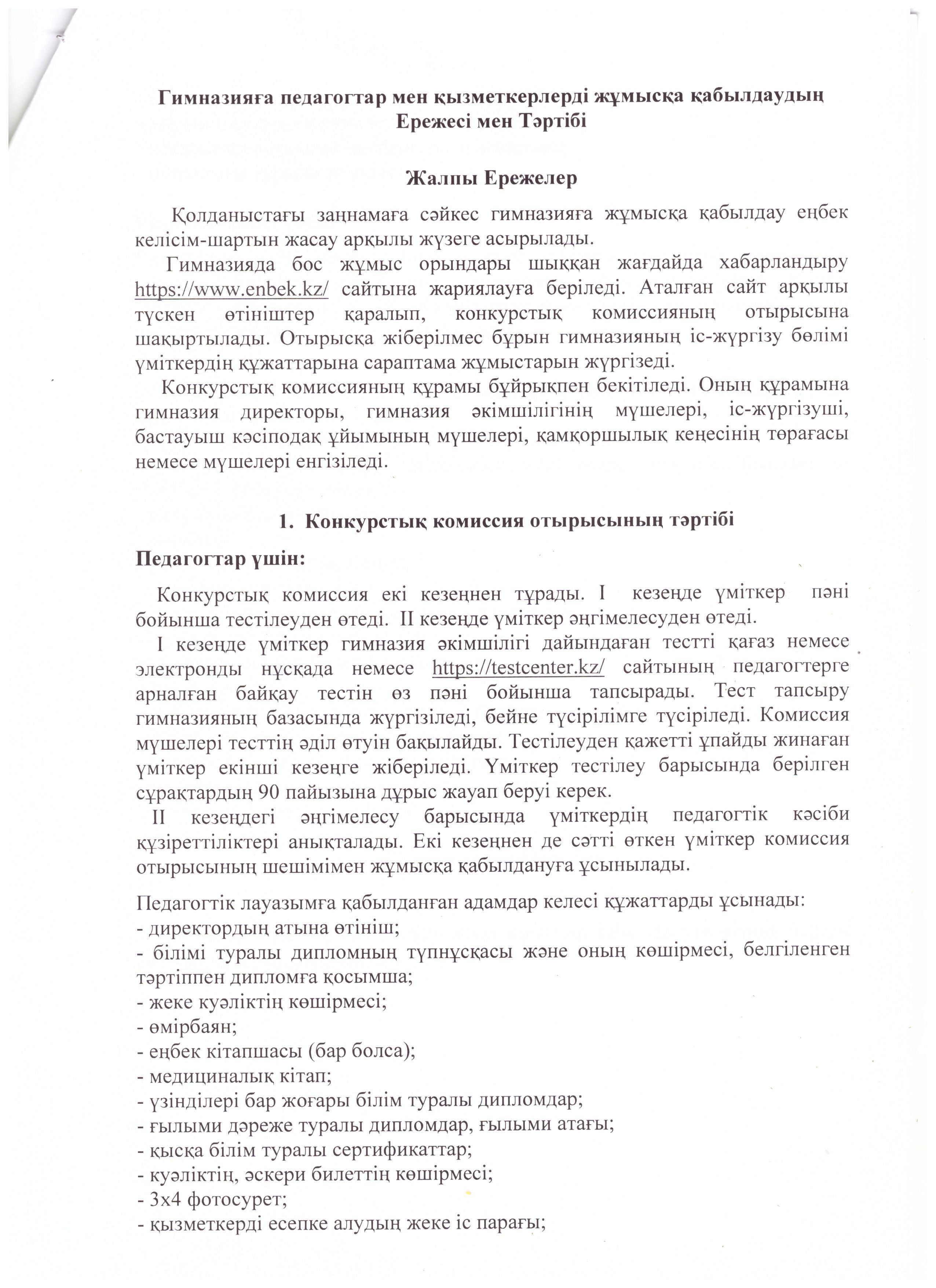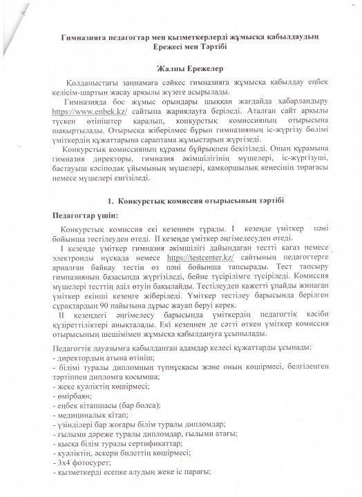 08 январь 2021 0 1 2 3 4 5 Гимназияға педагогтар мен қызметкерлерді жұмысқа қабылдаудың Ережесі мен Тәртібі