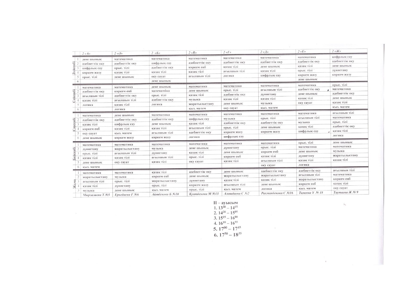 Бастауыш сабақ кестесі 2022-2023 оқу жылы » Төле би атындағы №8 гимназия