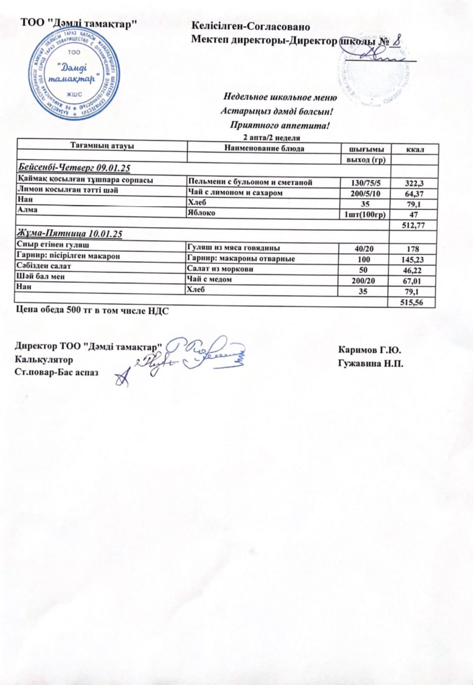 » » Ас мәзірі. 2024 жыл, қаңтар. 2-ші апта.