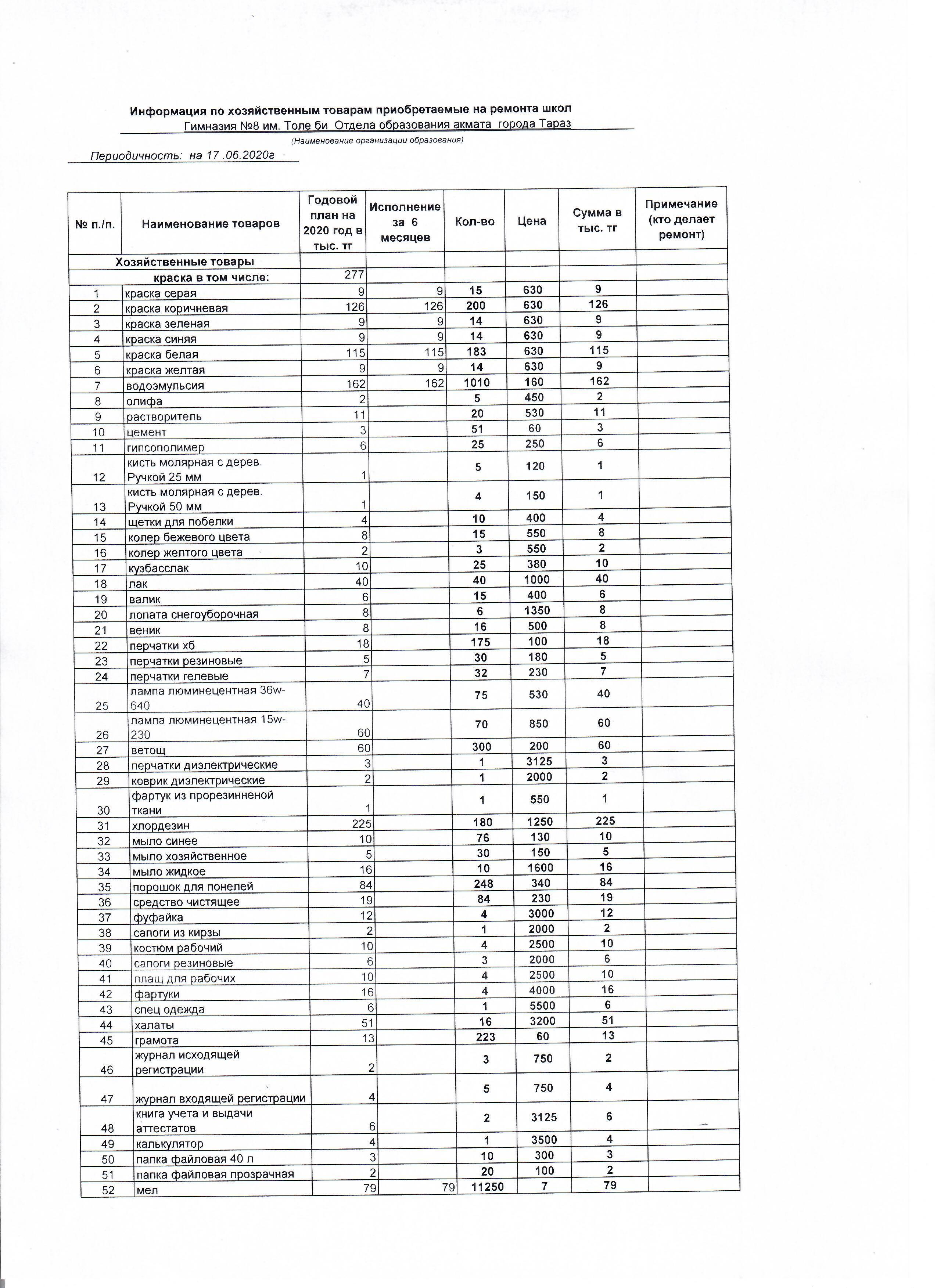 17 июнь 2020 0 1 2 3 4 5 2020 жылдың соңғы 6 айы бойынша қаражаттың игерілуі туралы ақпарат 2020 жылдың соңғы 6 айы бойынша қаражаттың игерілуі туралы ақпарат
