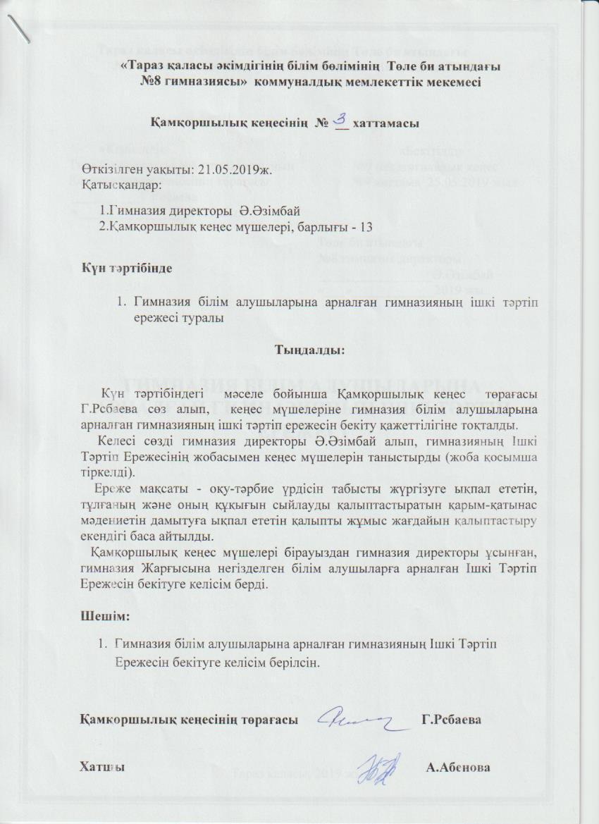Қамқоршылық кеңесінің №3 хаттамасы » Төле би атындағы №8 гимназия