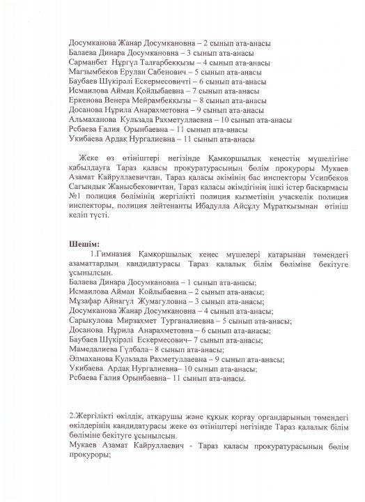 Қамқоршылық кеңесінің №5 хаттамасы » Төле би атындағы №8 гимназия