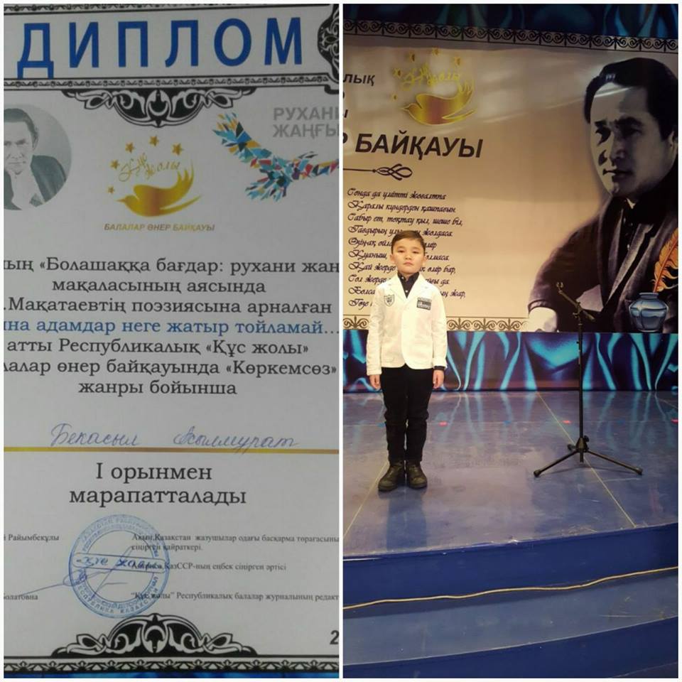 М.Мақатаевтің поэзиясына арналған Республикалық "Құс жолы" балалардың өнер байқауында 2 сынып оқушысы Бекасыл Асылмұрат көркемсөз бағыты бойынша 1 орын алды. Жетекшісі: Доспанбетова Динара