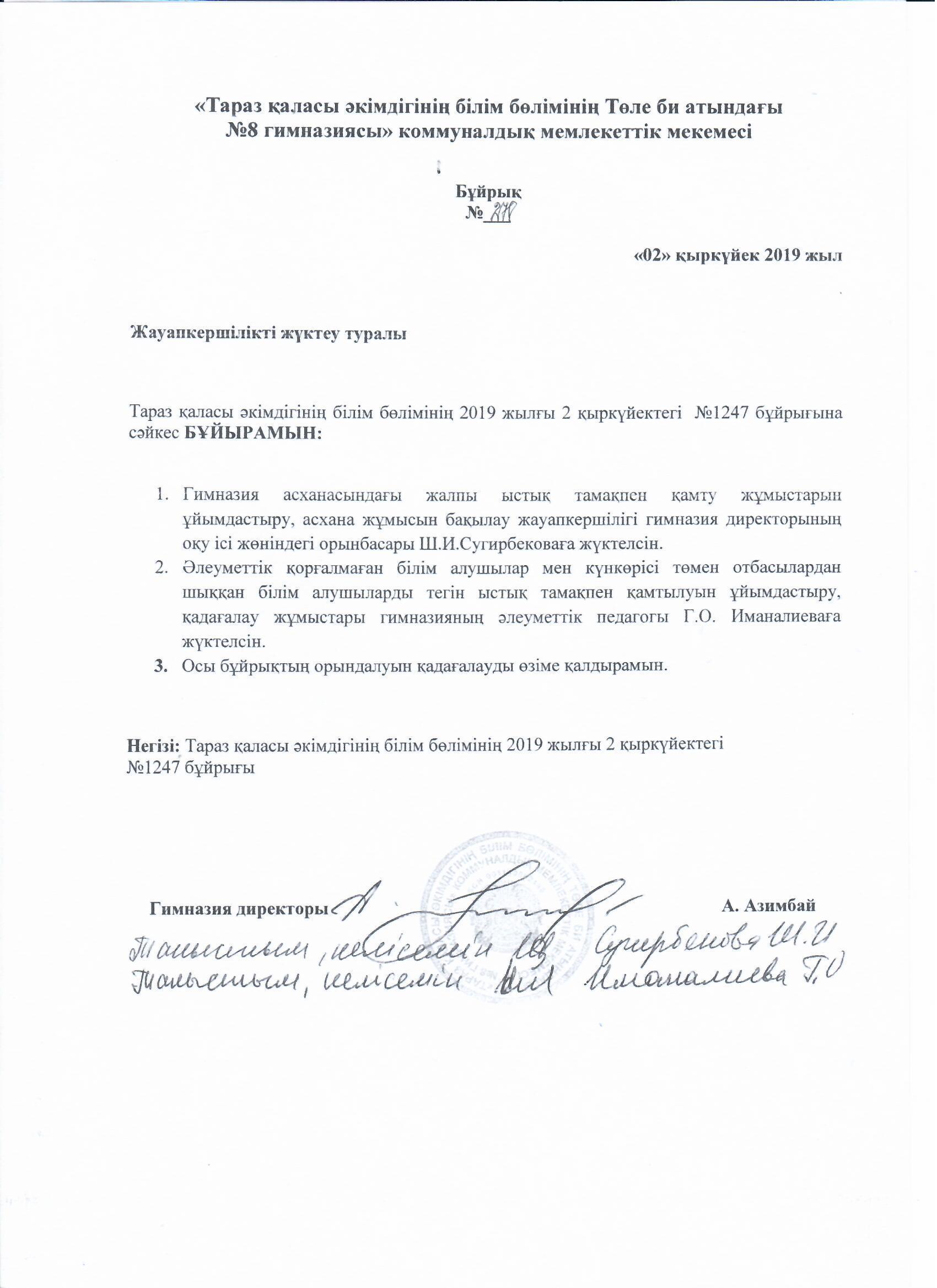Бракеражды коммиссия » Төле би атындағы №8 гимназия
