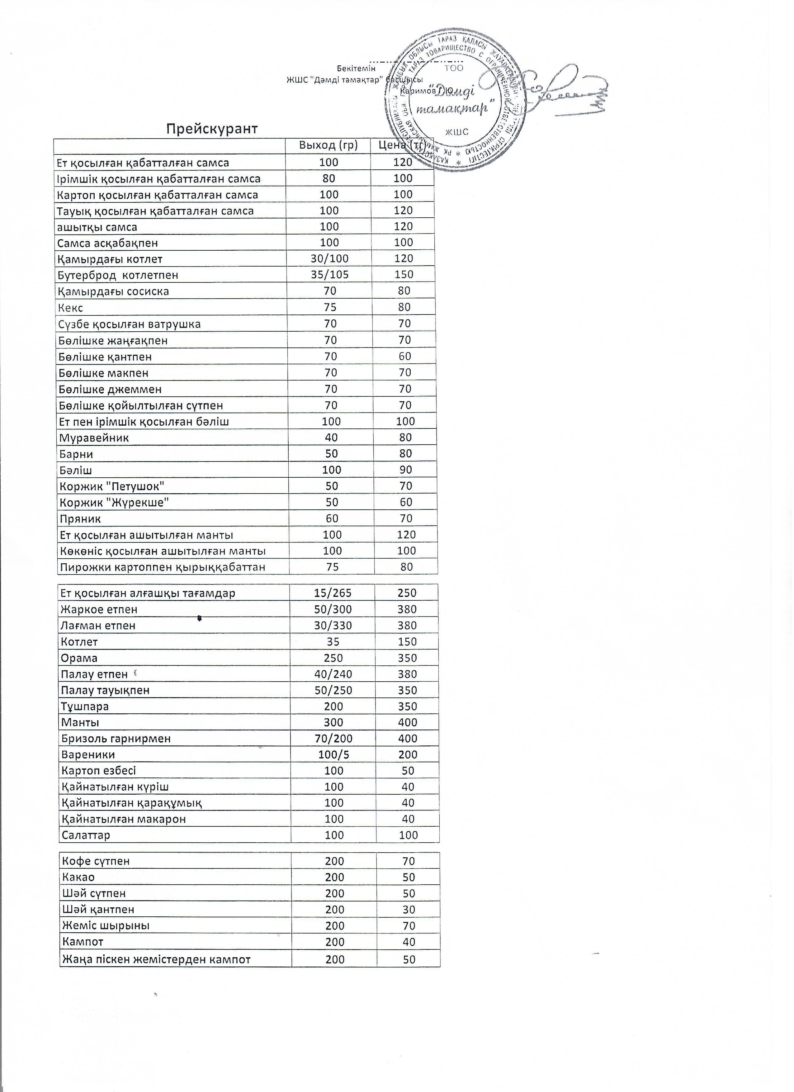 Прейскурант » Төле би атындағы №8 гимназия